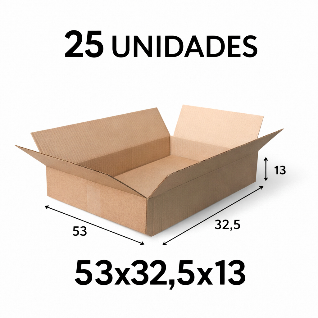 Caixa de Papelão 53x32,5x13 cm 25 Unidades Ideal Para Envio PAC Sedex Loja Online