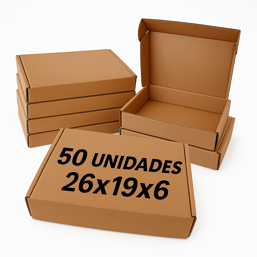 Caixas de Papelão 26x19x6 cm | kit com - 10 , 20 , 25 ou 50 Unidades | Correios PAC Sedex