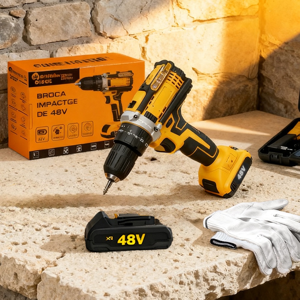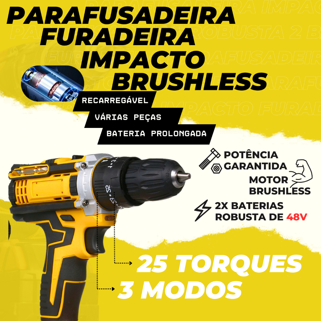 Parafusadeira Furadeira de Impacto a Bateria Recarregável Sem Fio 48v 1 Baterias Com Maleta Completo