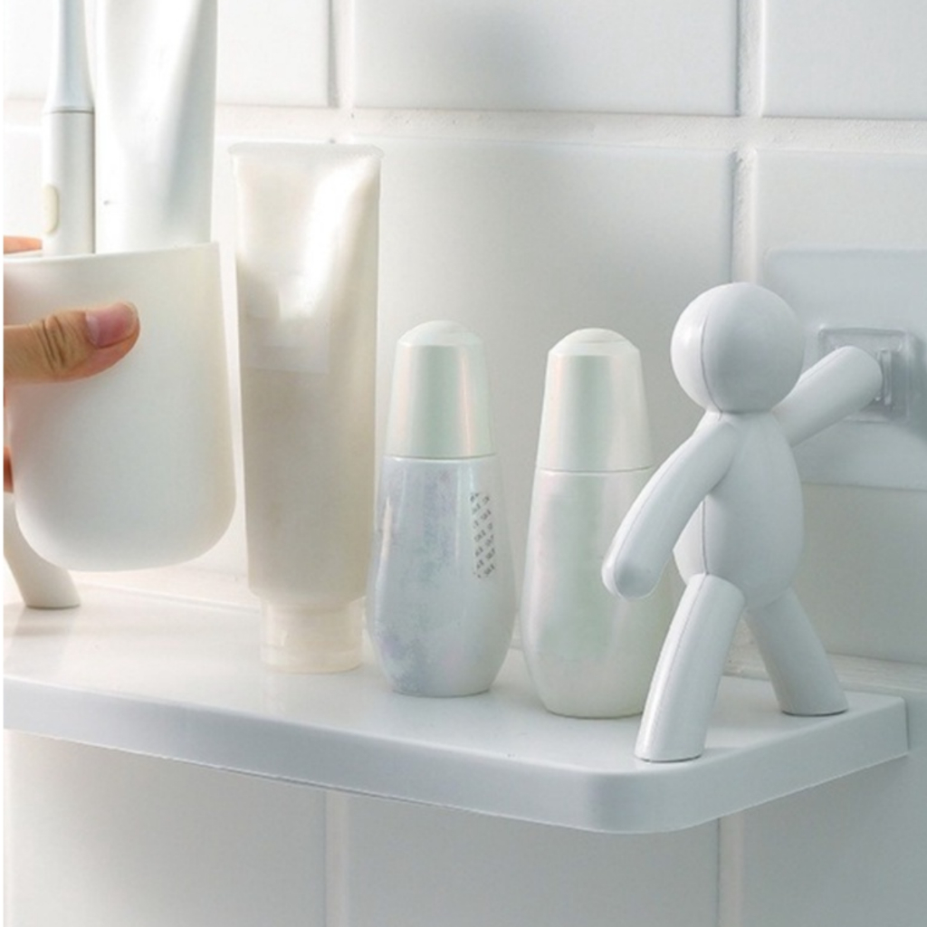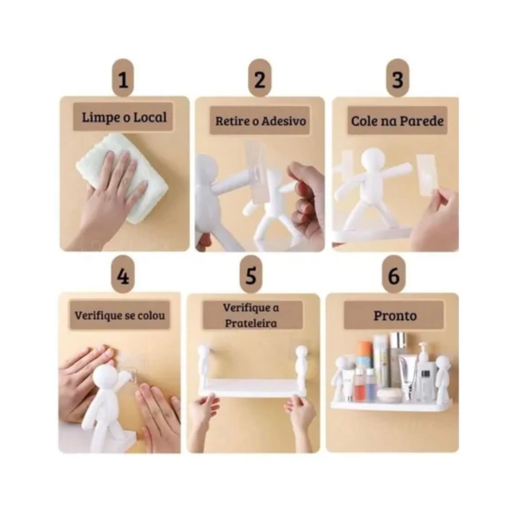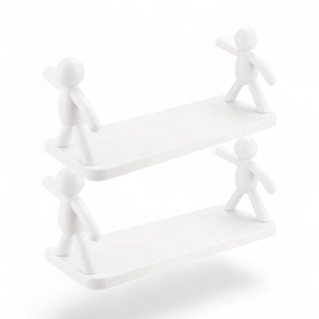Duas Prateleira Estante Bonequinho Buddy plástico com suporte decorativa banheiro cozinha C/ Adesivo