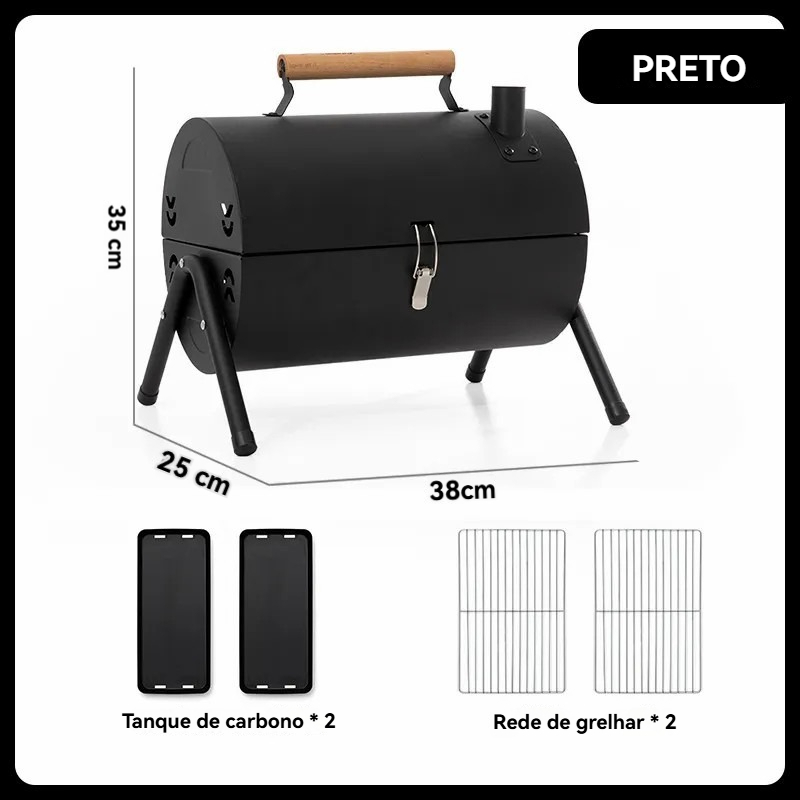 Mini Churrasqueira Móvel 38x35x25cm Tambor Preta a Bafo Churrasqueira Portátil A Carvão Para Apartamento Camping
