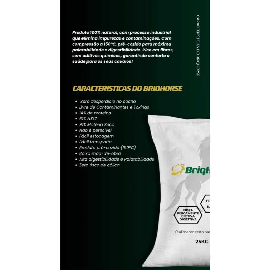 BriqHorse Volumoso Alimento Para equinos 100% natural Rico em Fibras Efetivas Digestiva 25 Kg