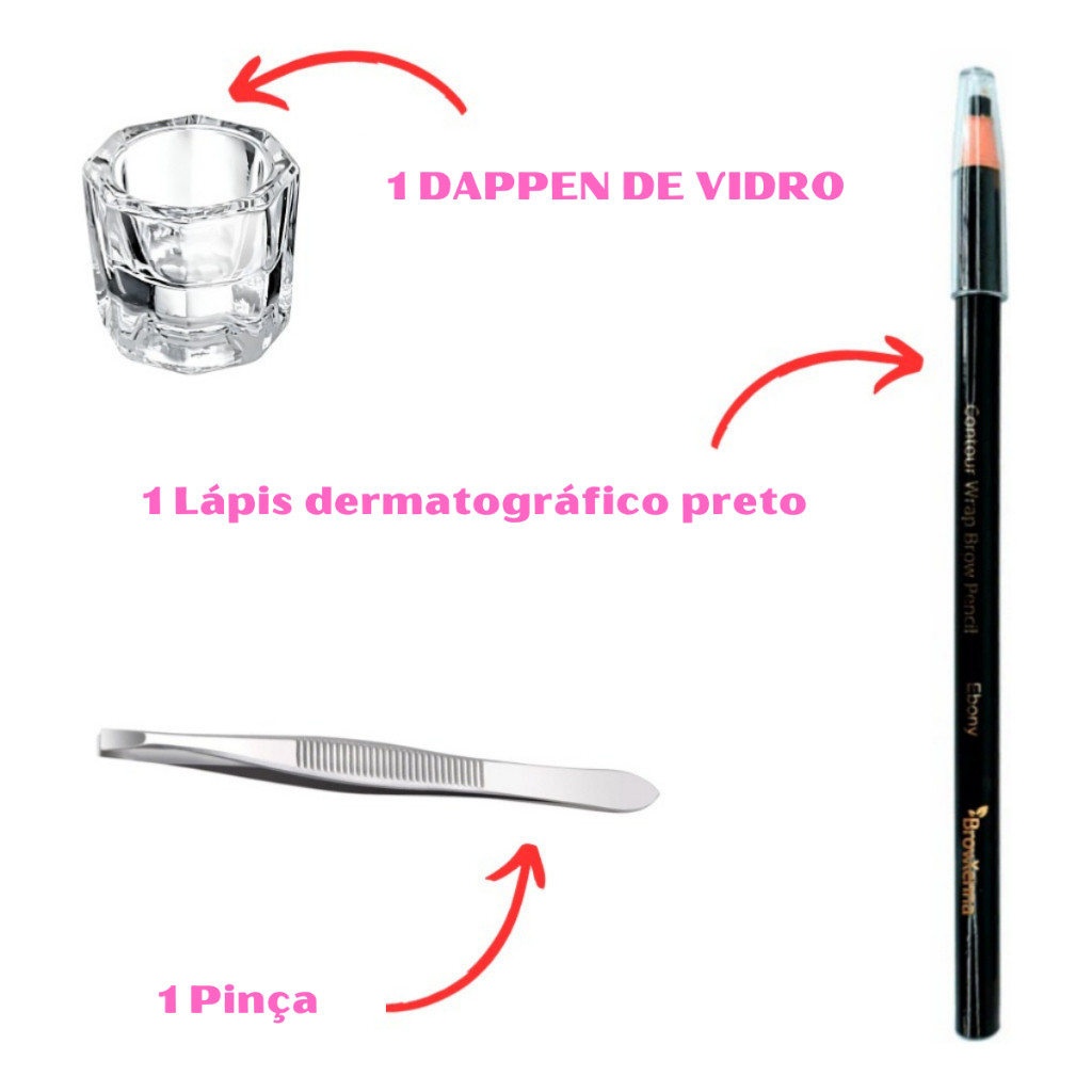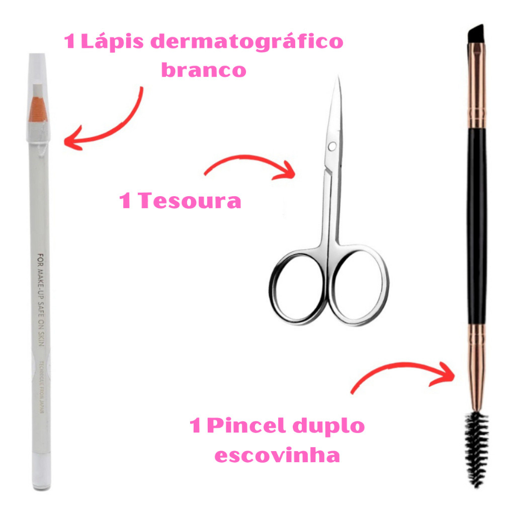 Kit Sobrancelha Profissional Henna makiaj + Navalha + Paquímetro + Tesoura + Pincel + Dappen + Lápis + Palito