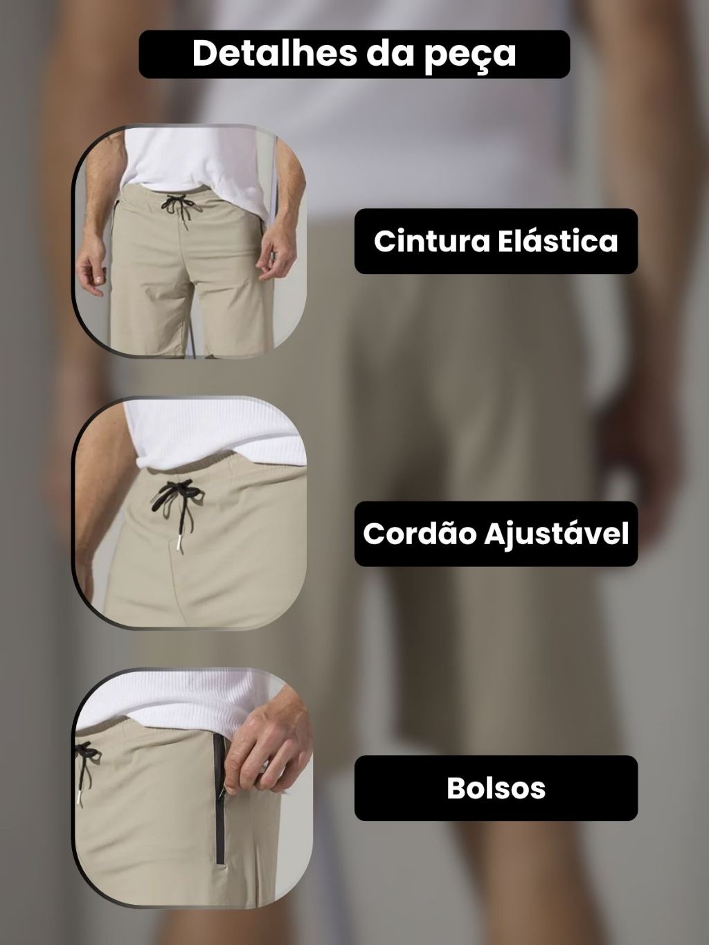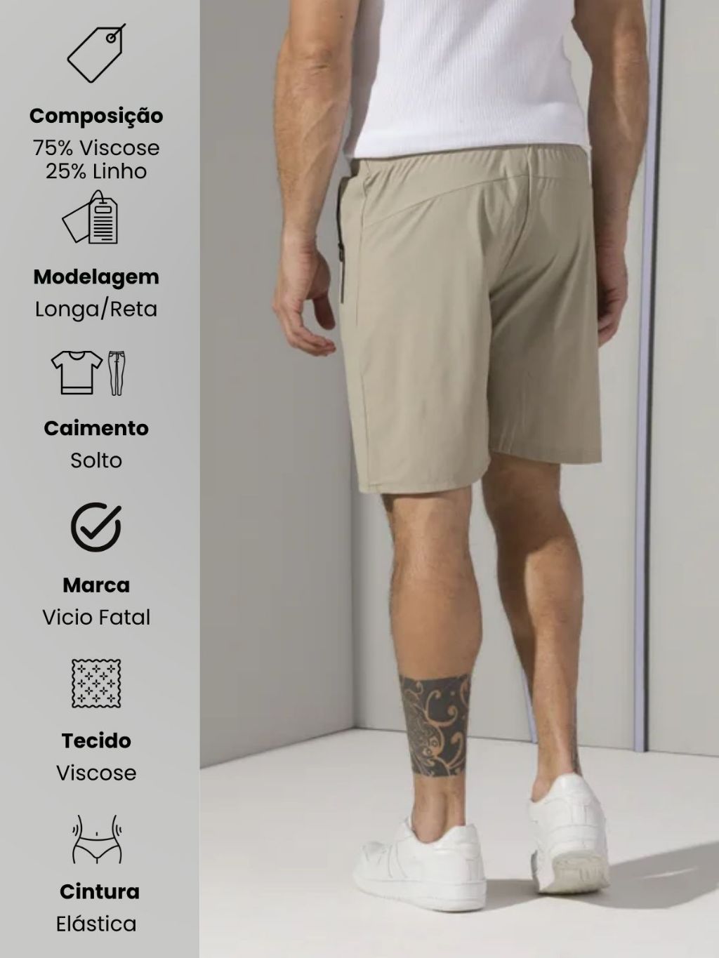 Bermuda Masculina Poliamida com Elastano Cintura Com Elástico Viscose Coleção Verão Linho Gelado