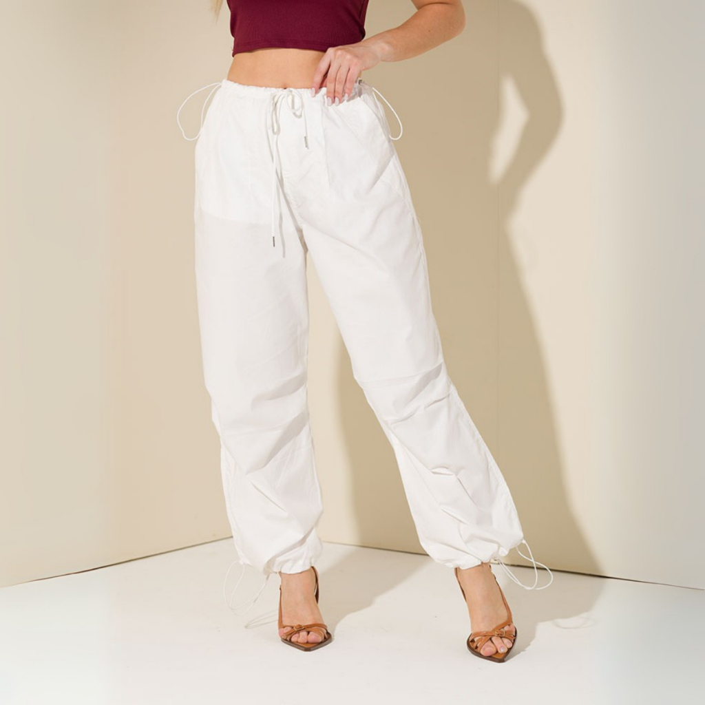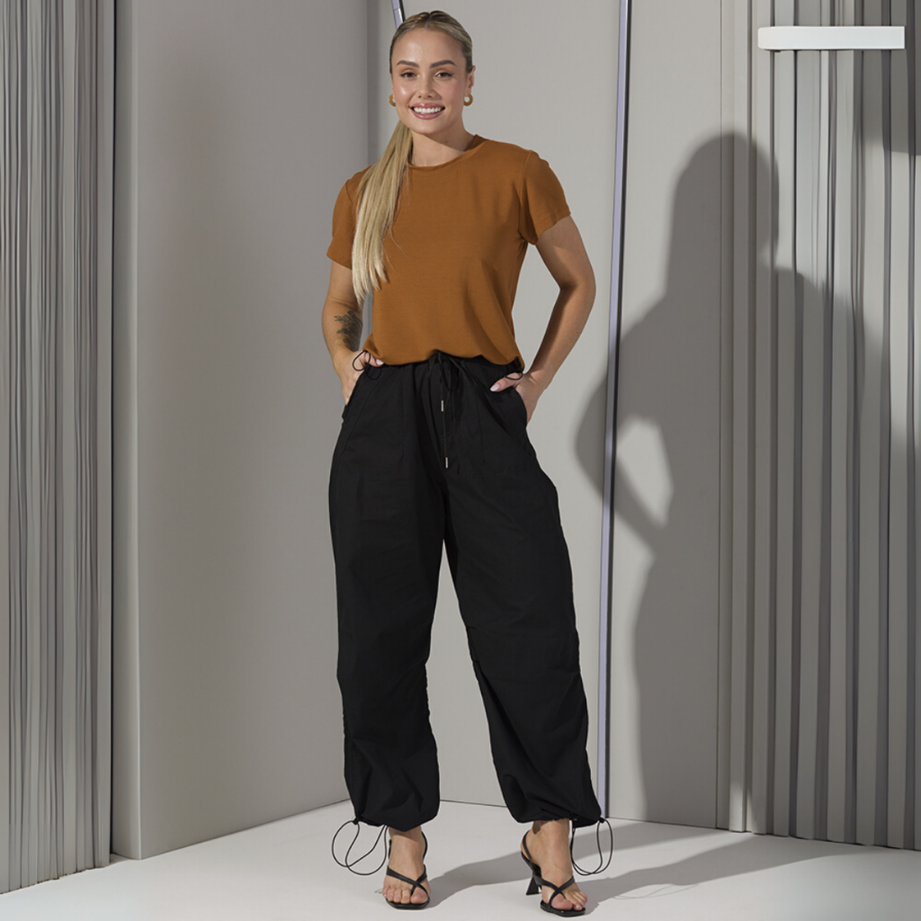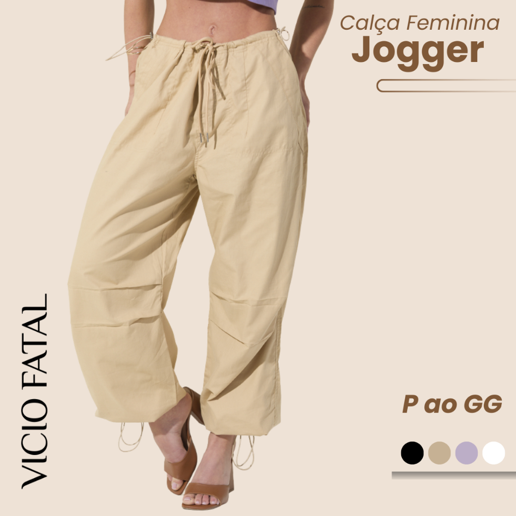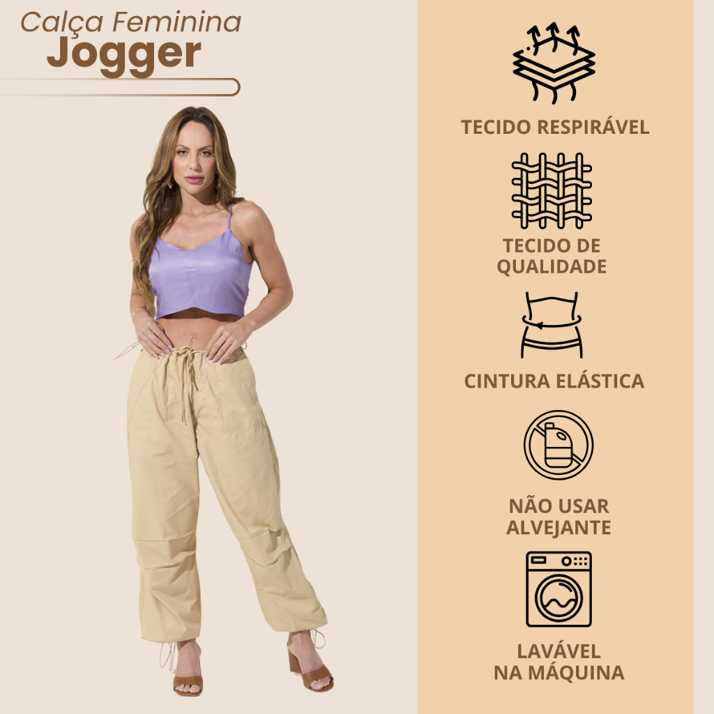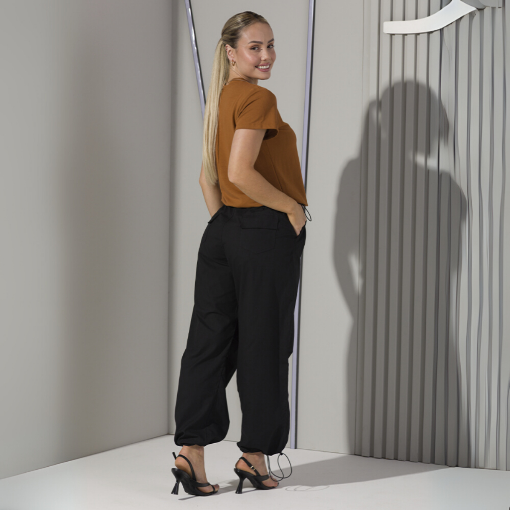 Calça Jogger Street Feminina Ampla Bolsos Funcionais Cintura e Bainha com Elástico