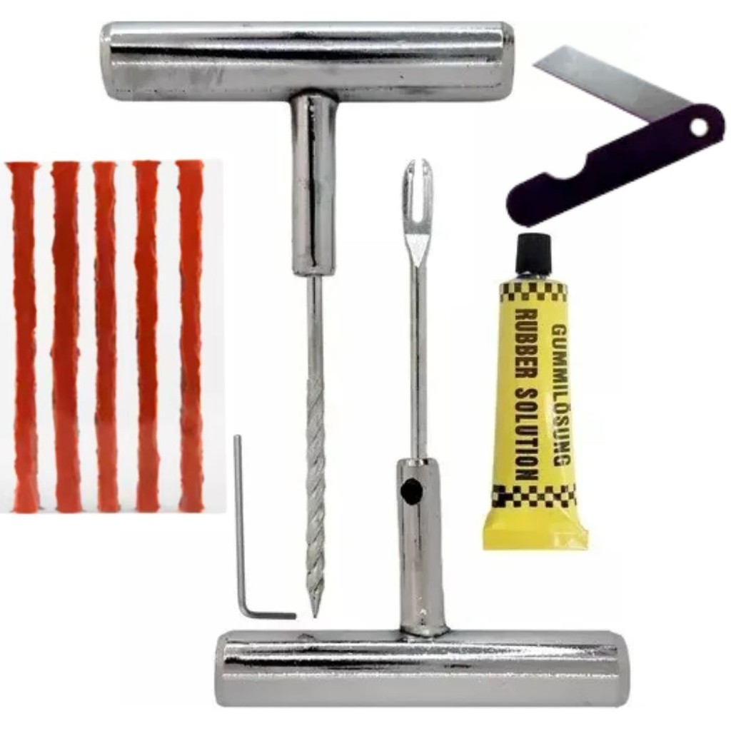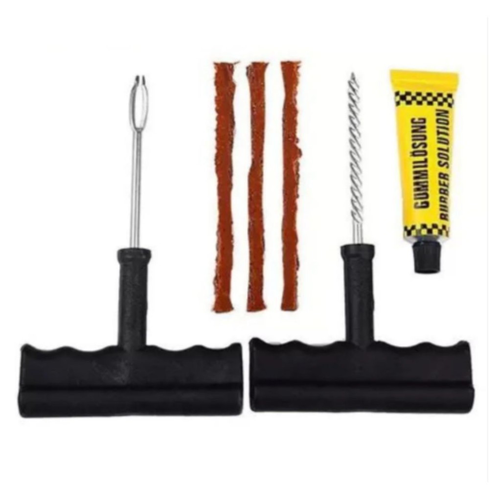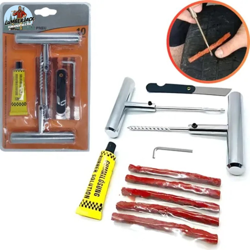 Reparo Pneu sem Camara para Carro e Moto Profissional de 10 Peças Refil Selante Macarrão Remendo + Bomba de Ar para Pneu