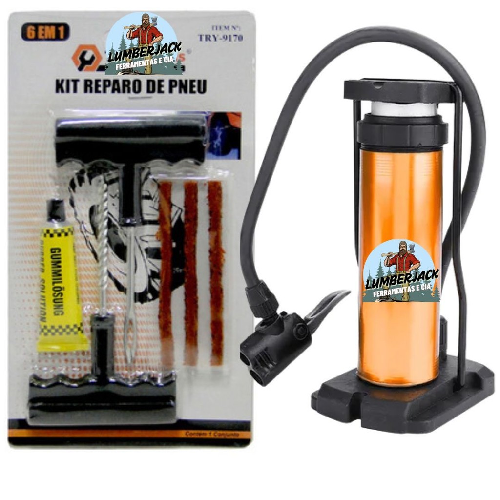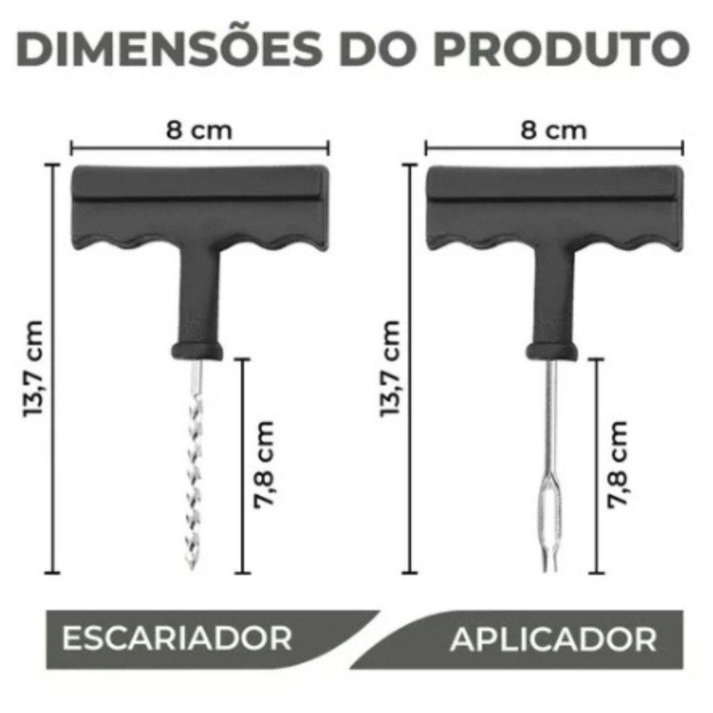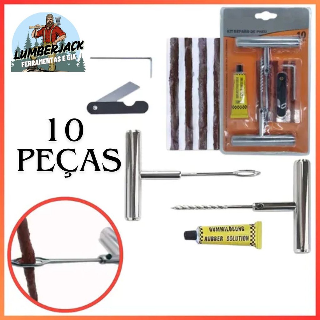 Reparo Pneu sem Camara para Carro e Moto Profissional de 10 Peças Refil Selante Macarrão Remendo + Bomba de Ar para Pneu