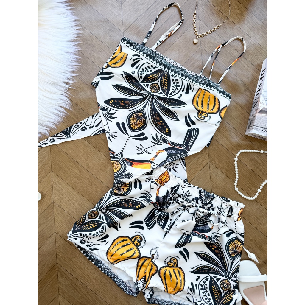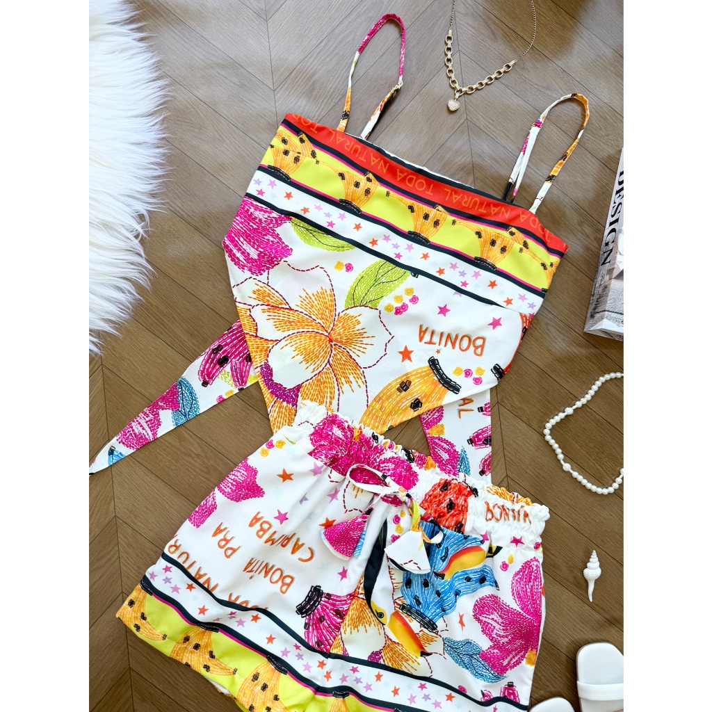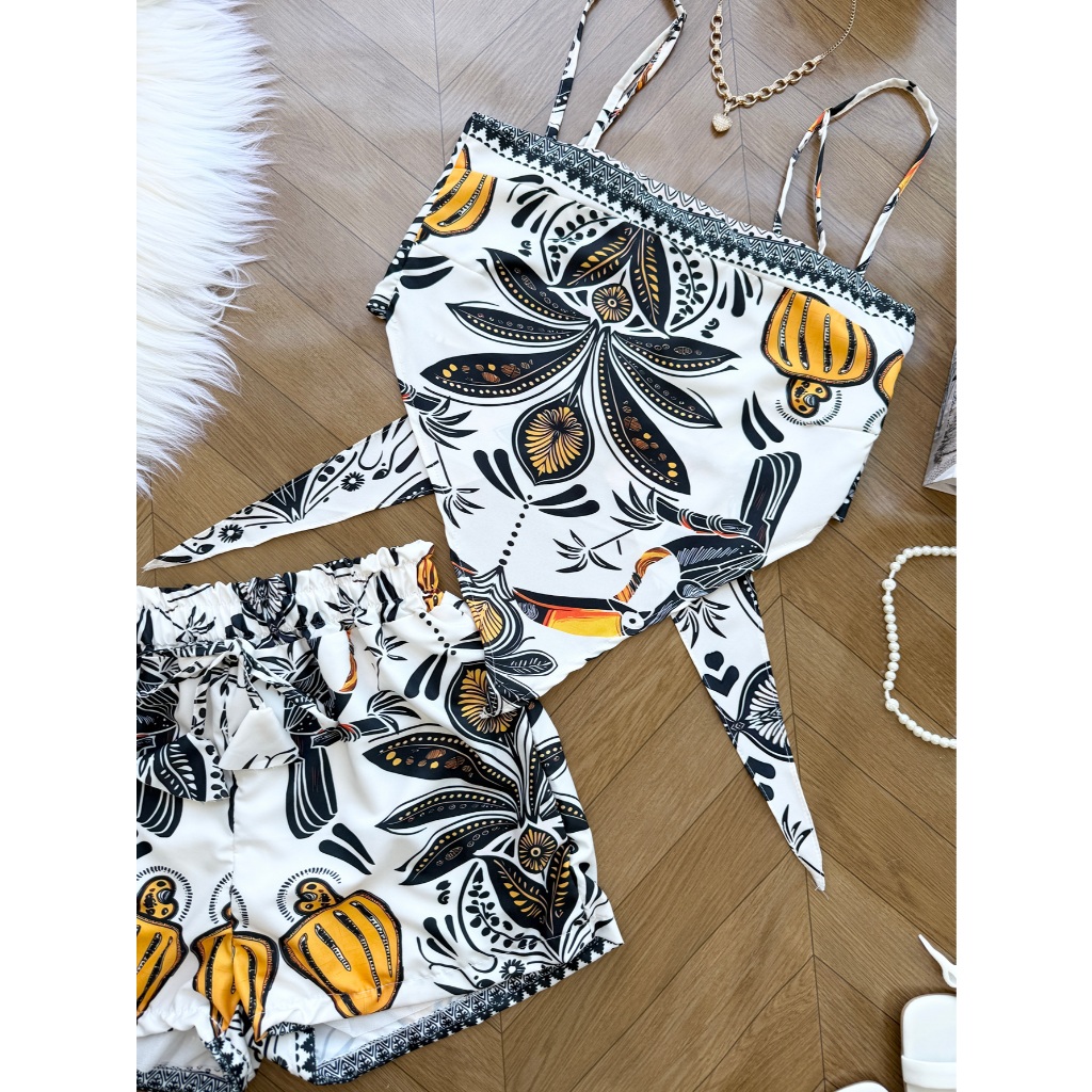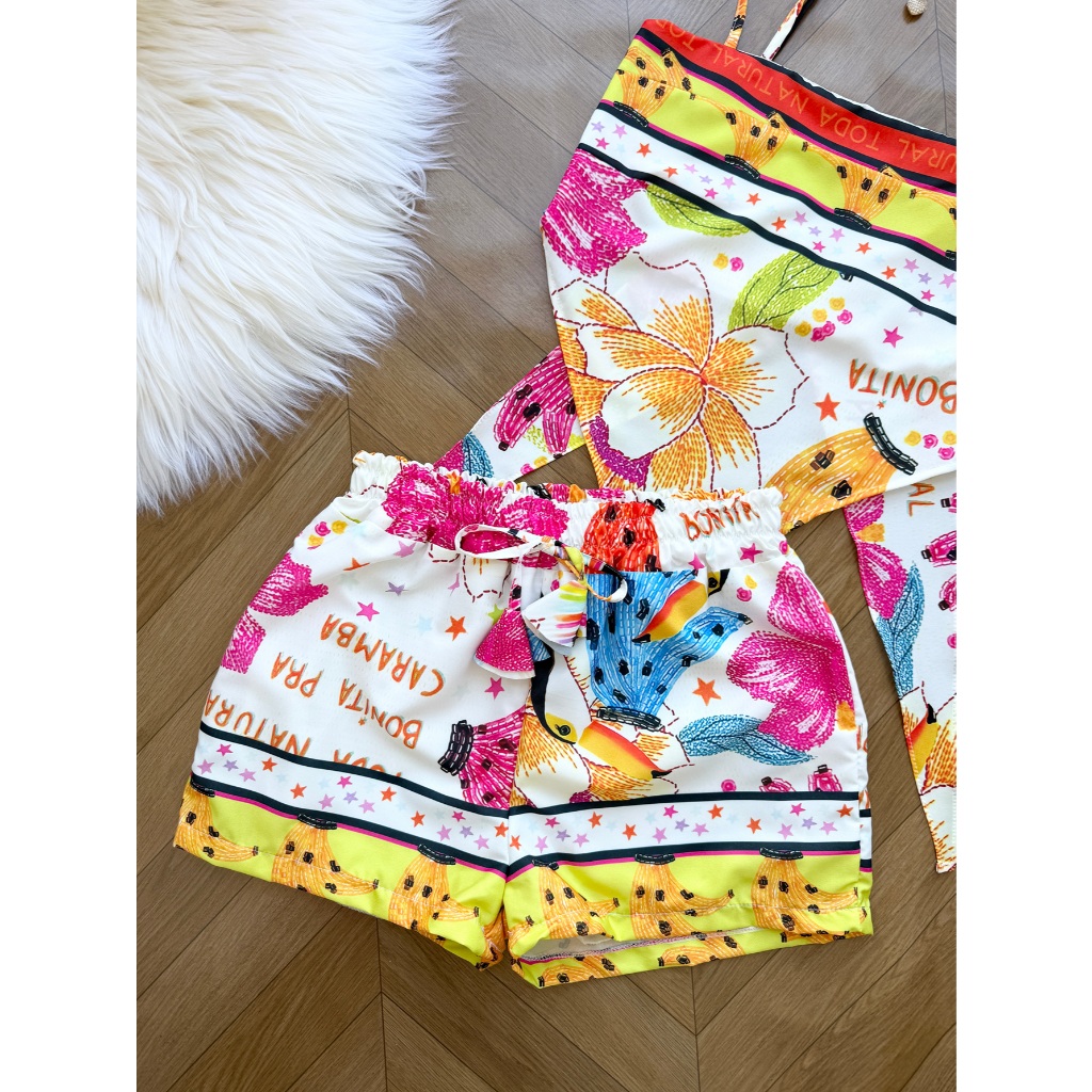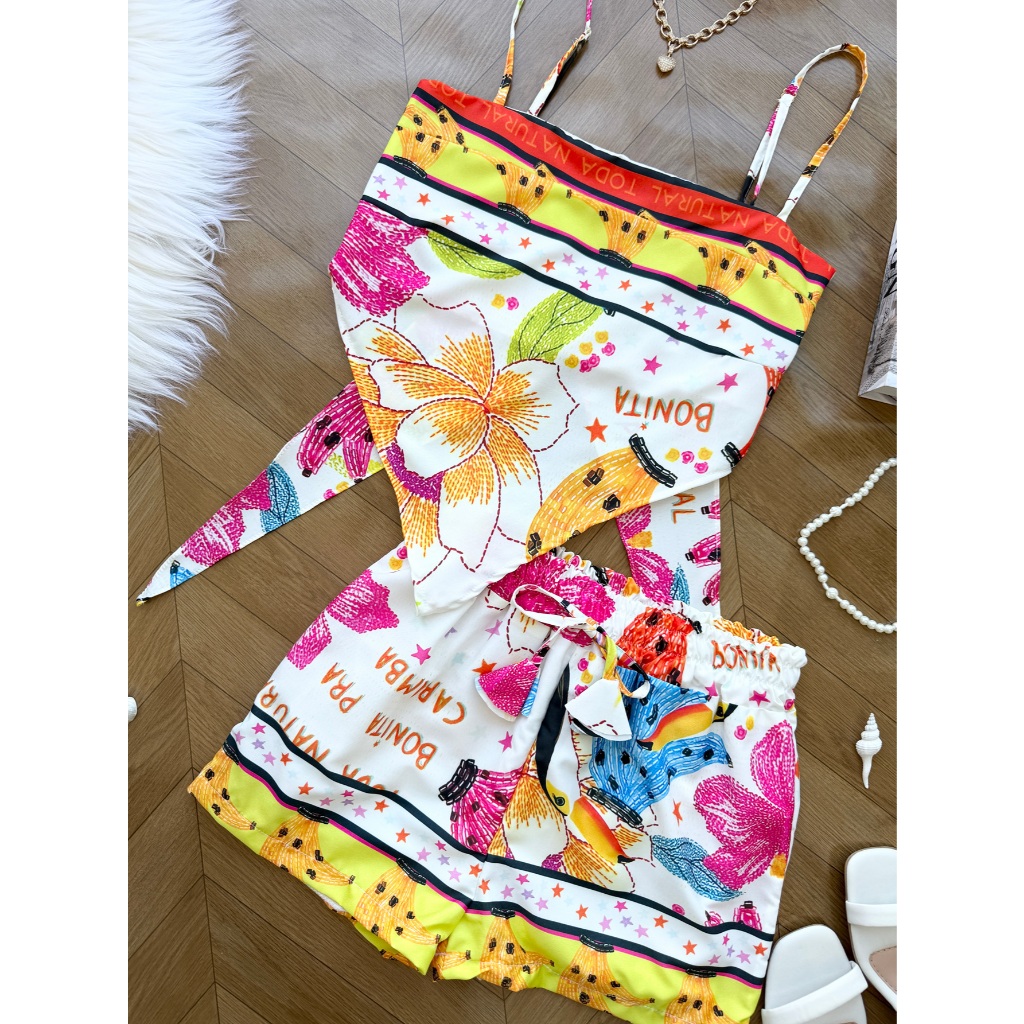 AZALEA Conjunto feminina em tecido crepinho de cropped com amarração +short com forrado 212