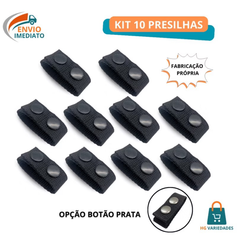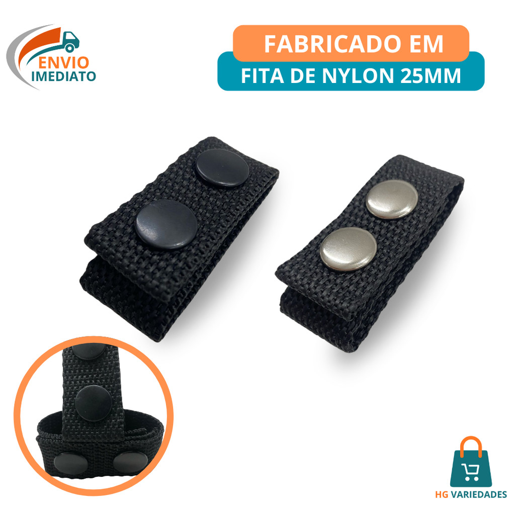 Kit 10 Presilha De Nylon Para Cinturão Guarnição Cinto Tático Com Botão Preto Ou Niquelado