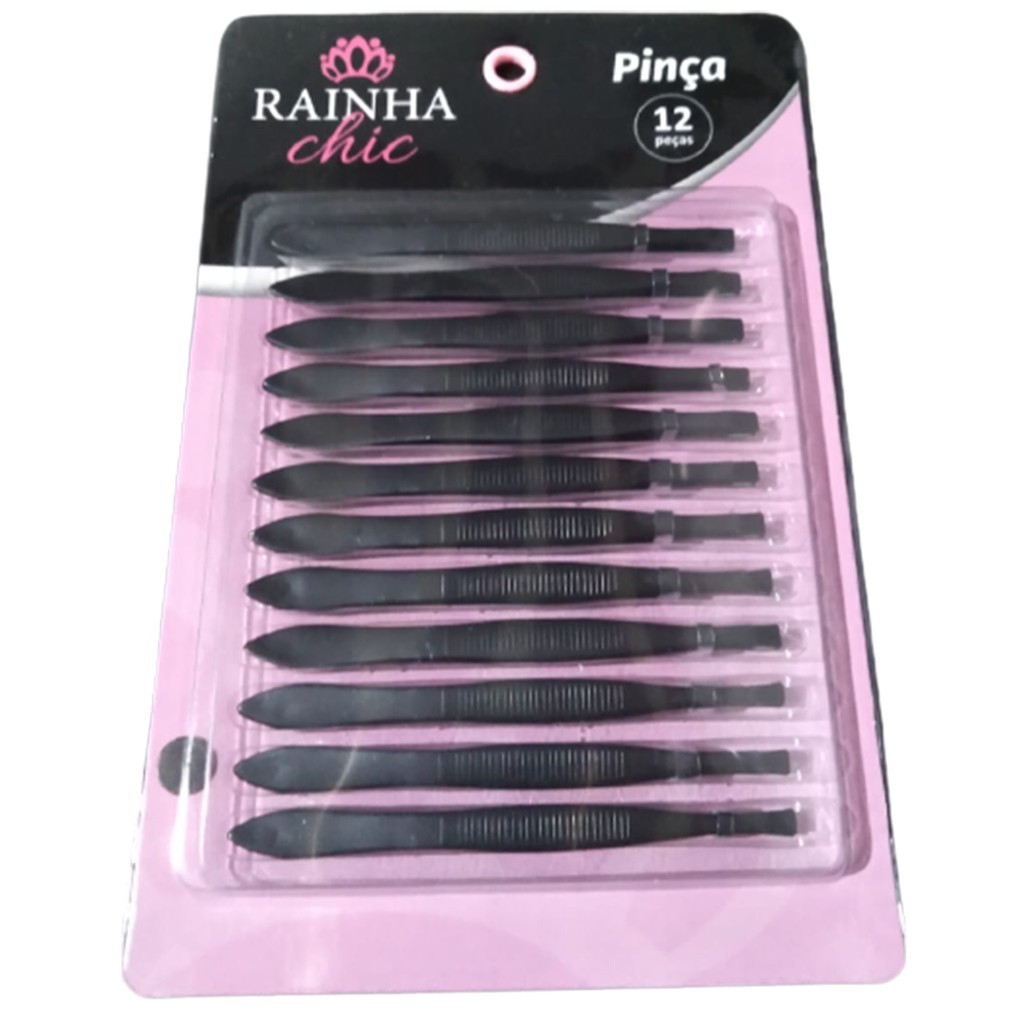 Kit 12 Pinças de Alta Precisão Preta e Prata Ideal para Uso Profissional e Doméstico