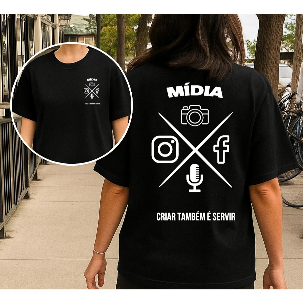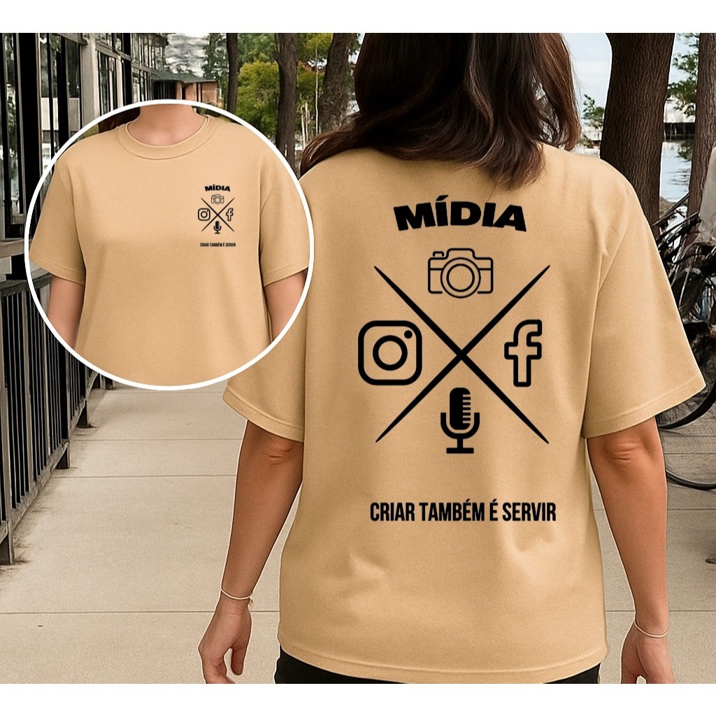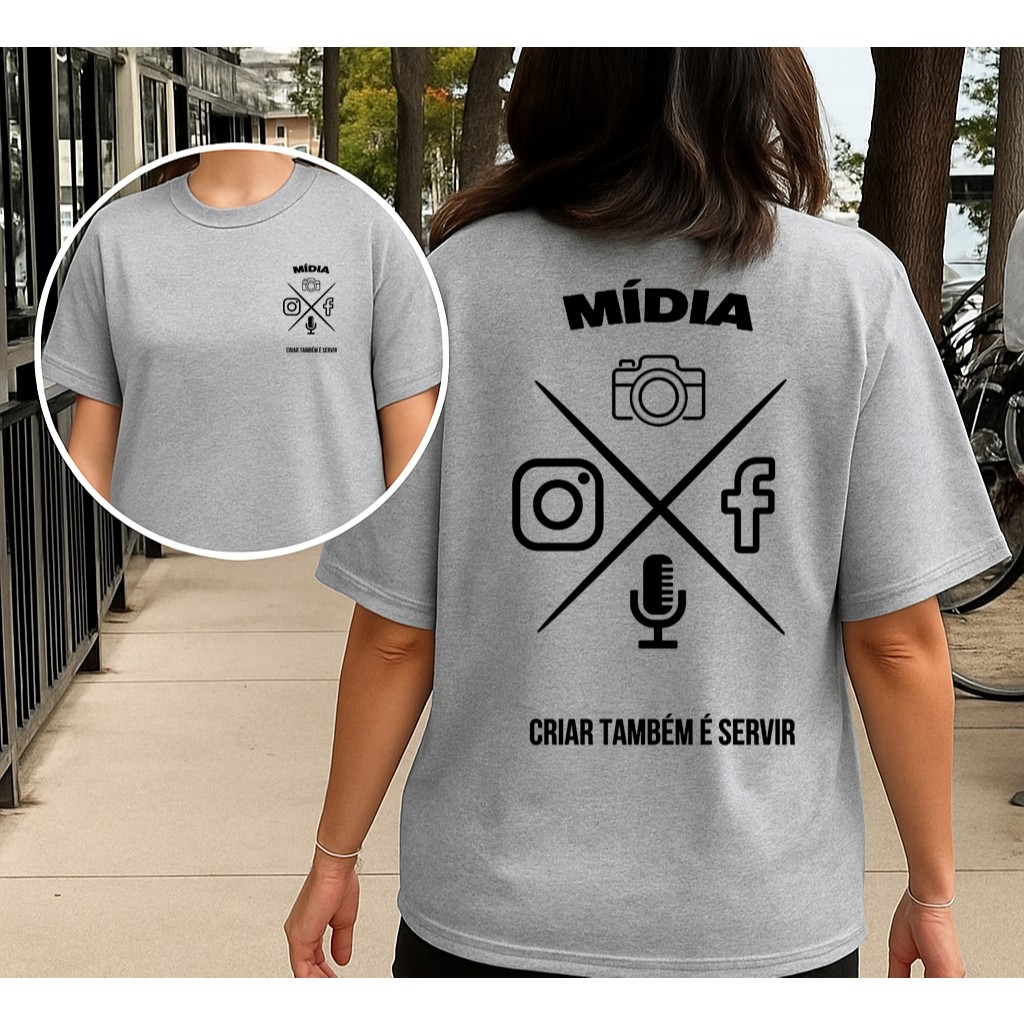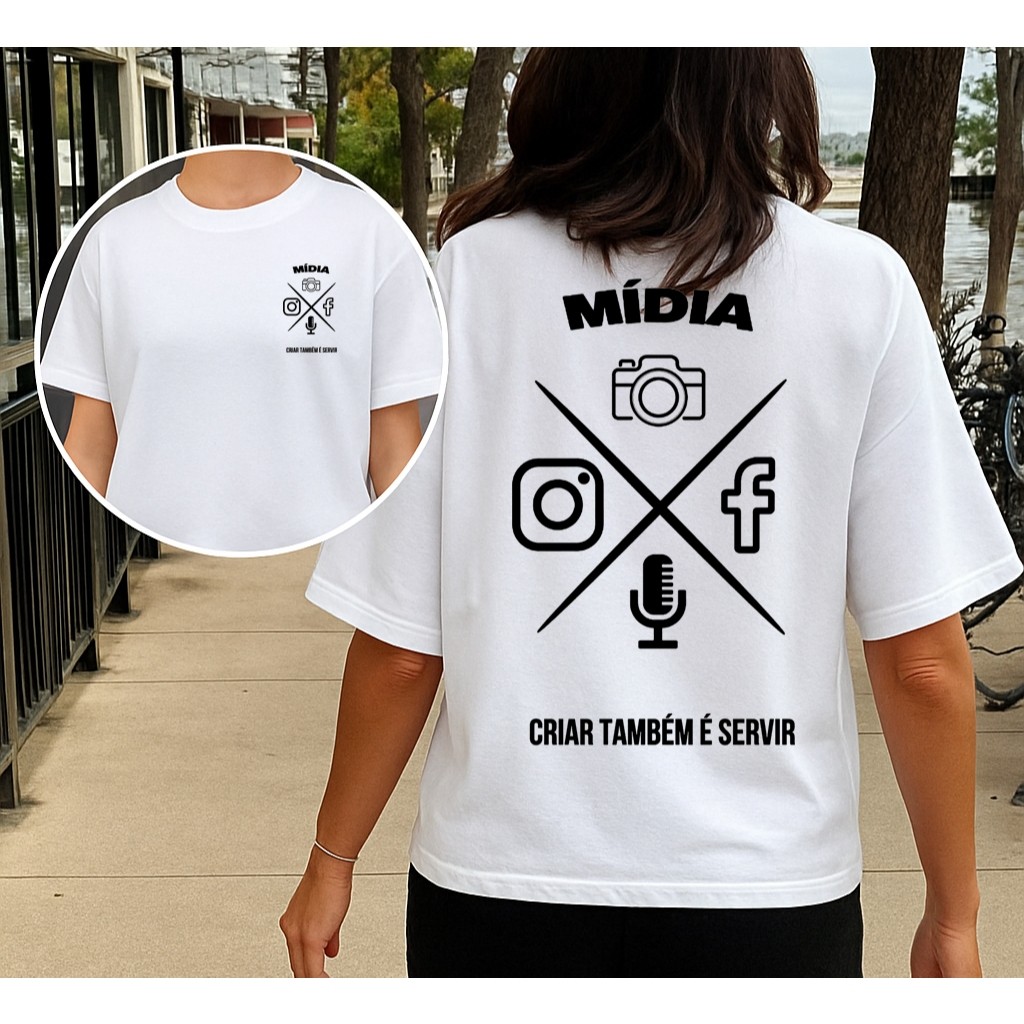 Camiseta Feminina Algodão Premium Tecido Mácio MÍDIA Cristã Criar Também É Servir Para Comunicação e Ministérios