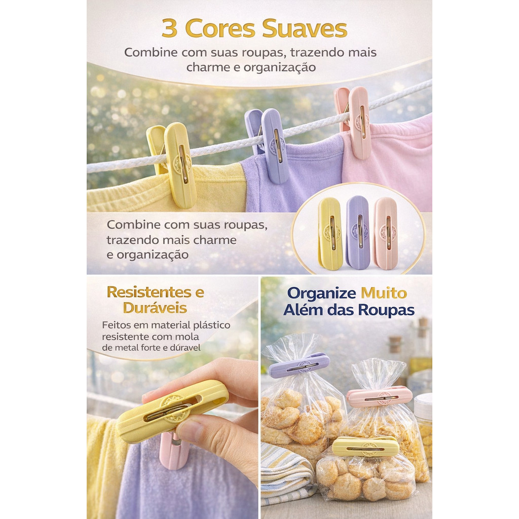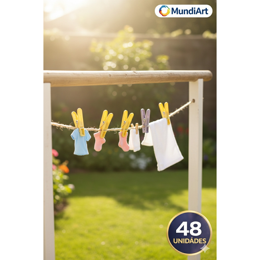 Kit 48 Pregadores de Roupas 6cm MundiArt – Resistentes para Peças Médias e Grandes