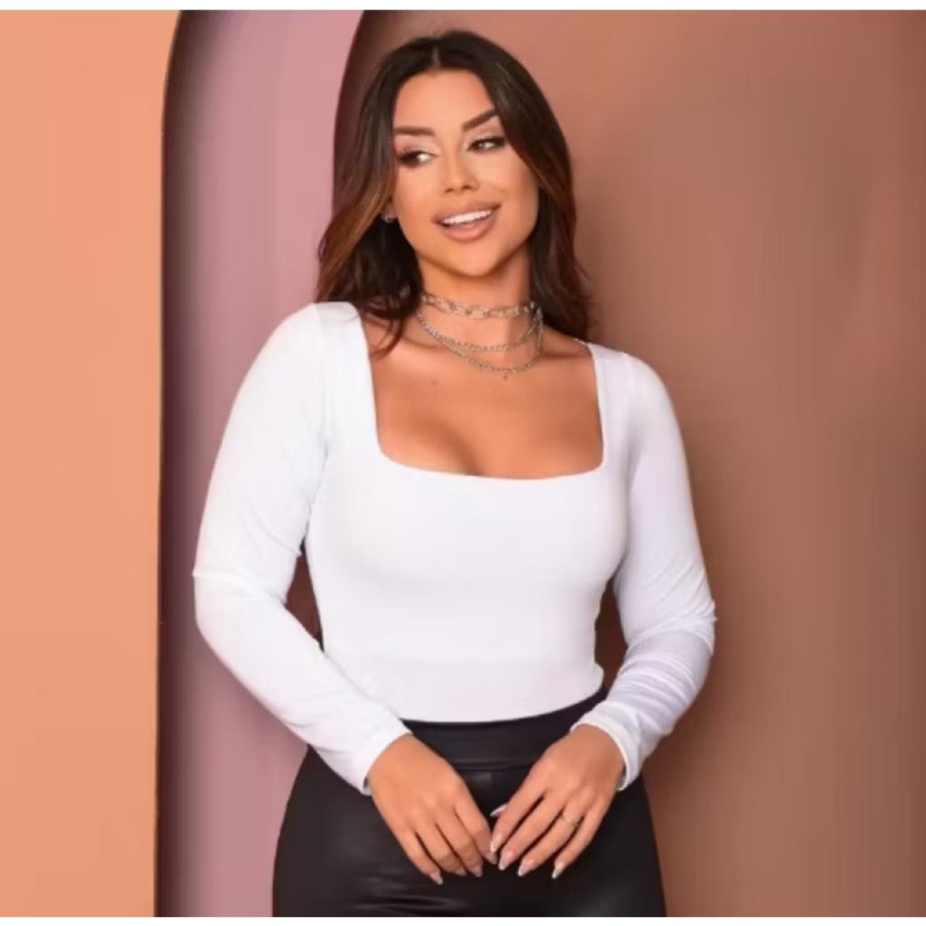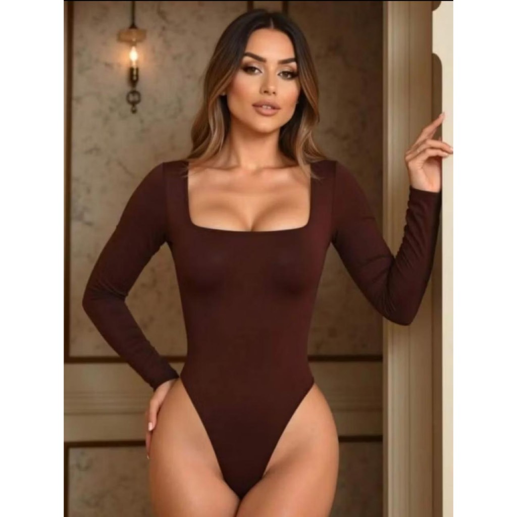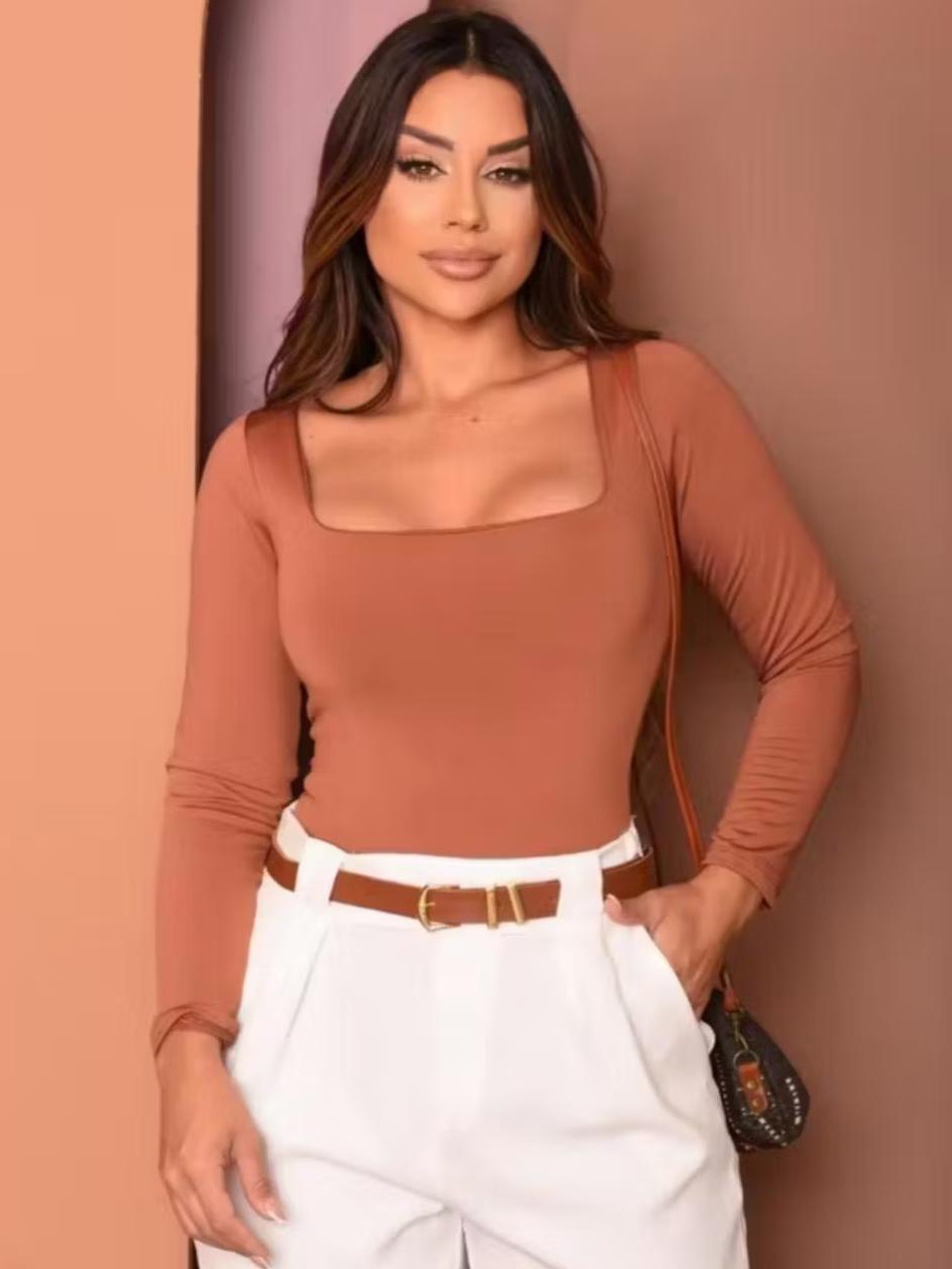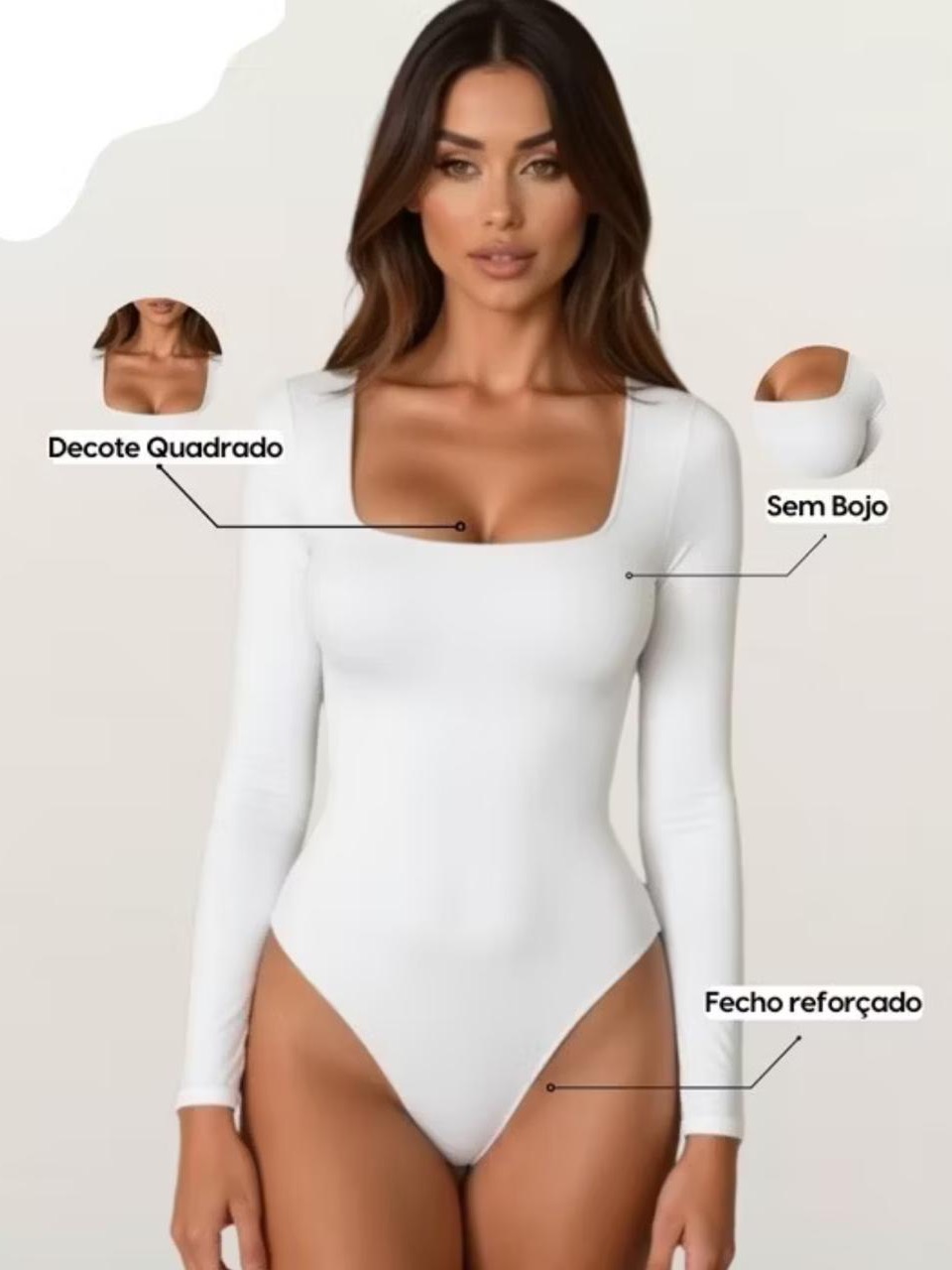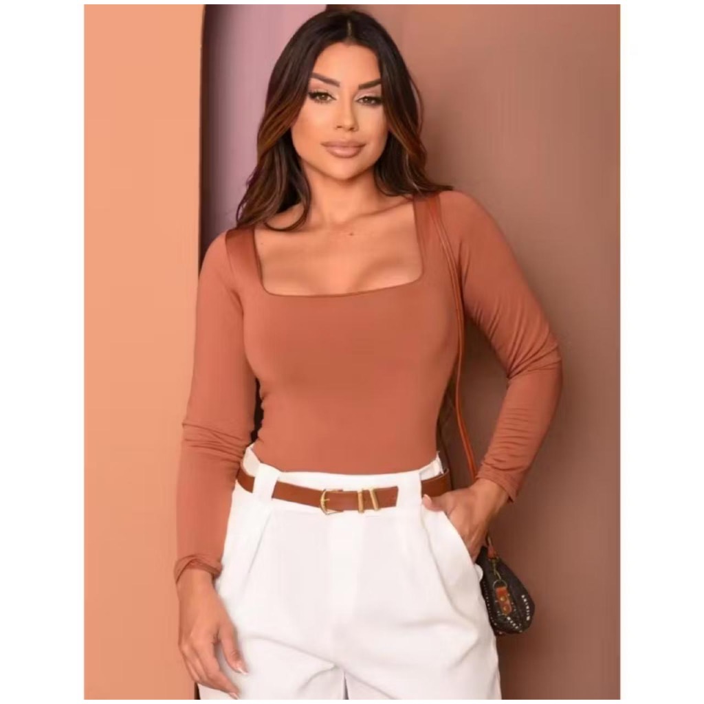 Body Collant Feminino Manga Longa Com Decote Tendência Moda Blogueira Outono Inverno Bory Bori