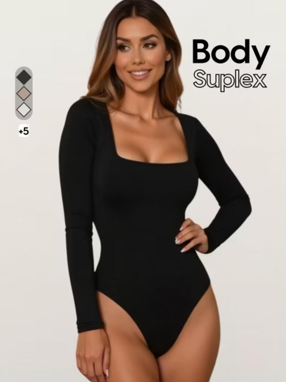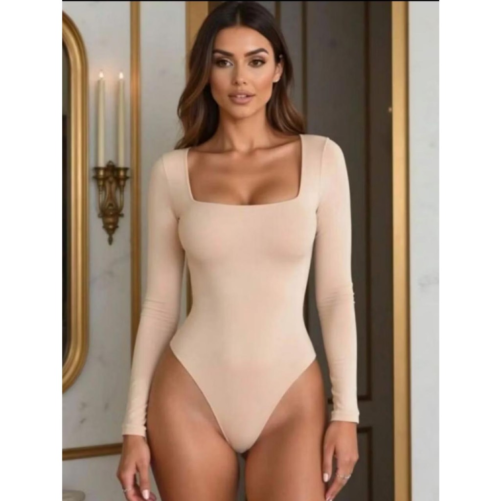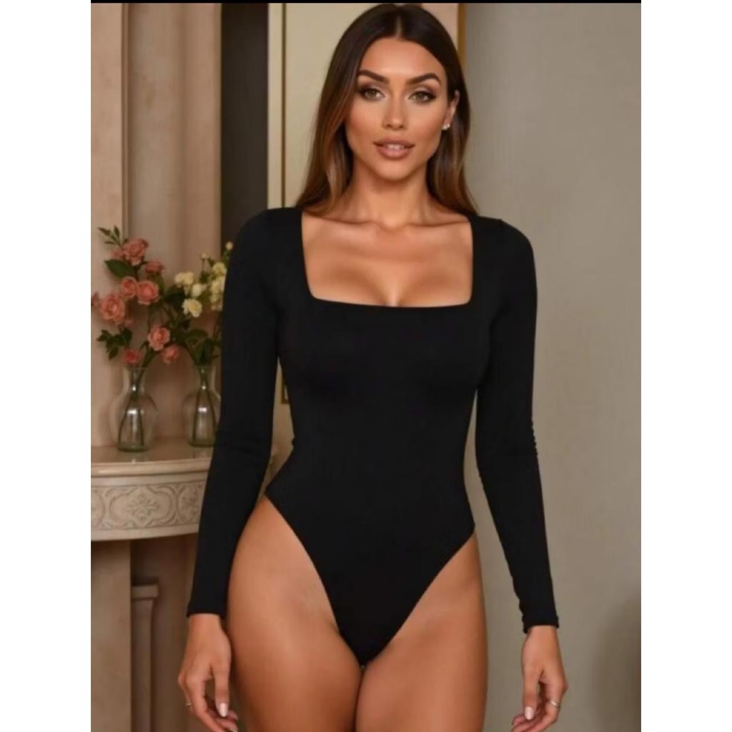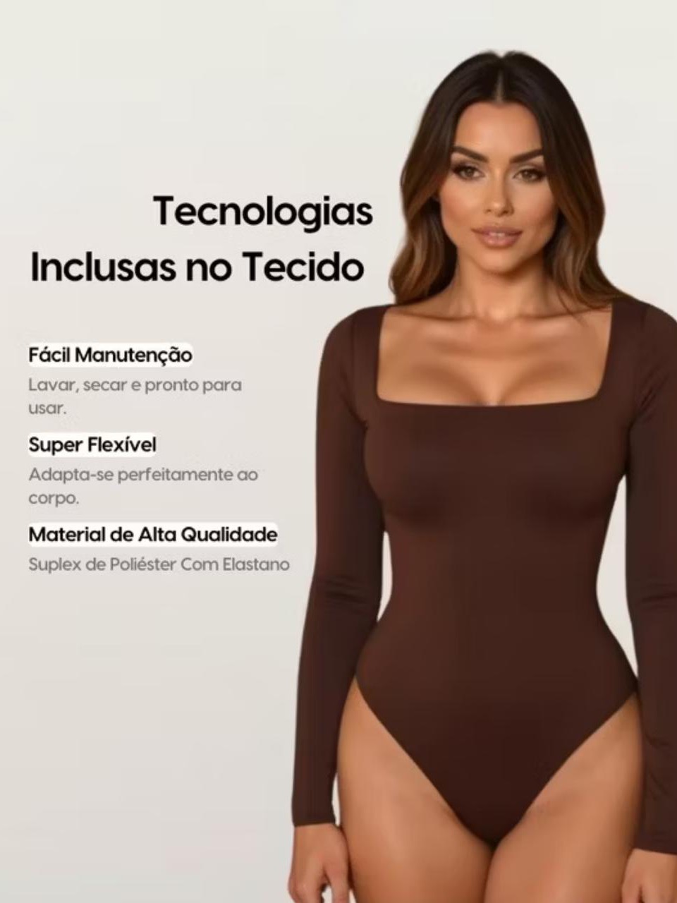 Body Collant Feminino Manga Longa Com Decote Tendência Moda Blogueira Outono Inverno Bory Bori