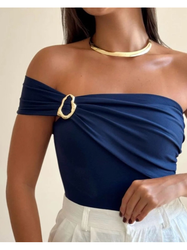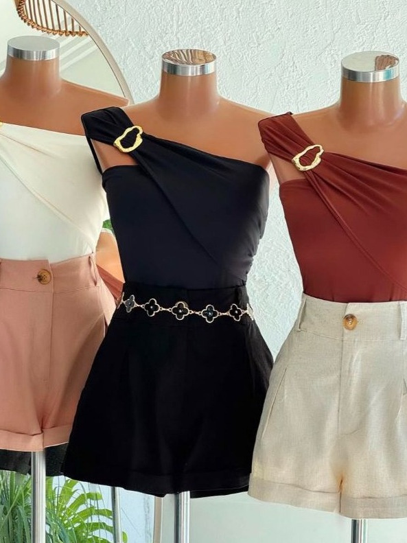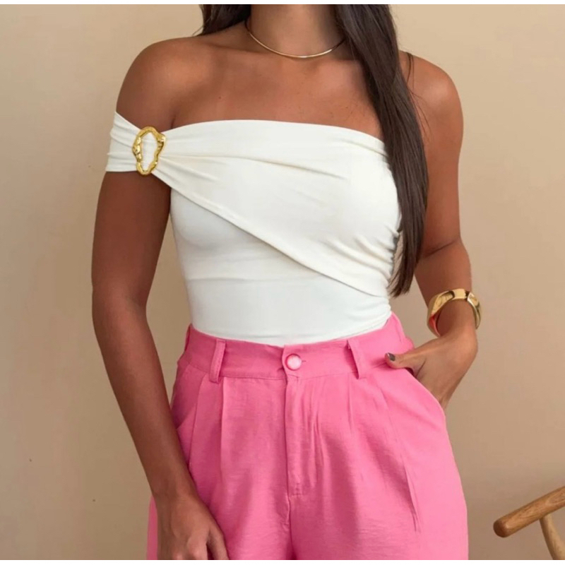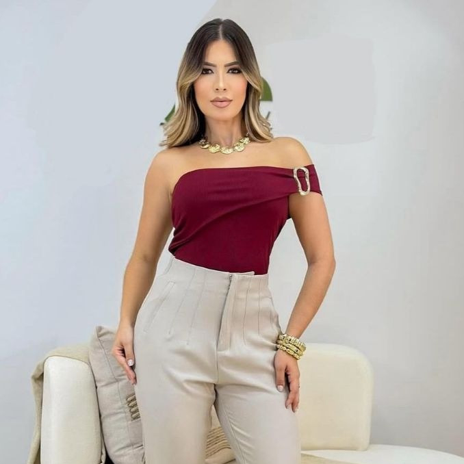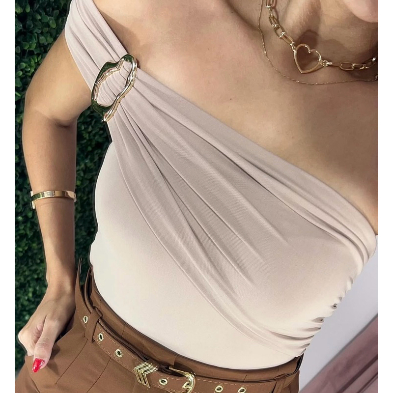 Body Feminino Fivela Orgânica Tendência 2026 Casual Elegante Moda Gringa Blogueira