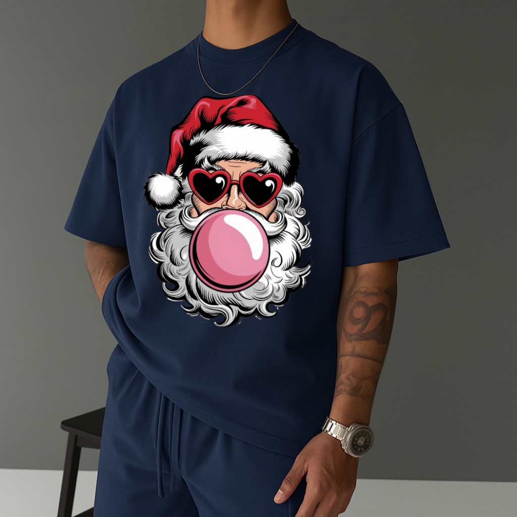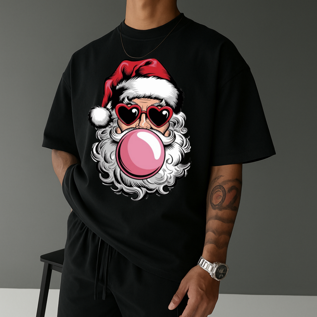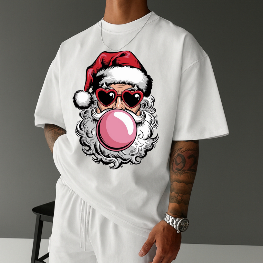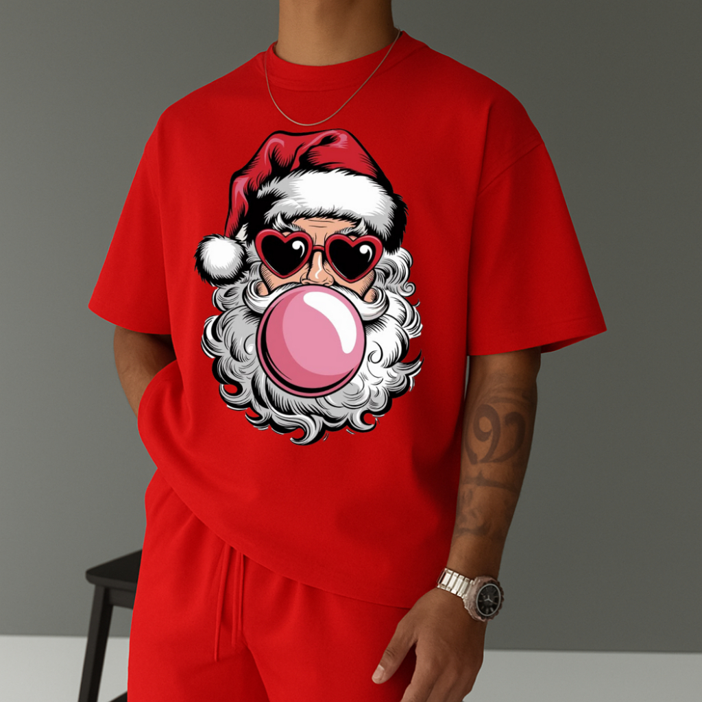 Camiseta Masculina Streetwear Papai Noel Bubbaloo Natal 2025 Tecido Algodão Estilo Academia Manga Curta Gola Redonda