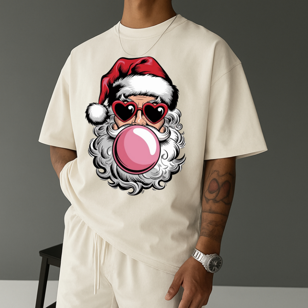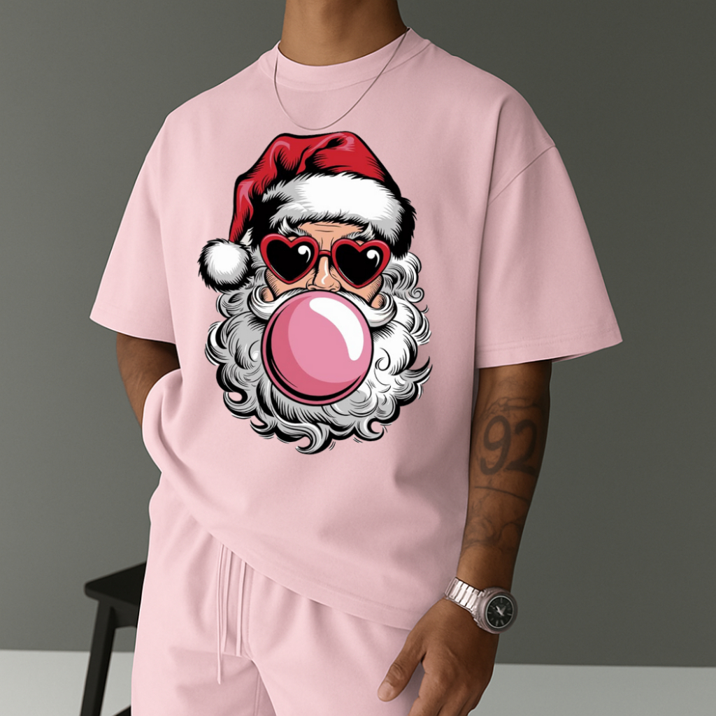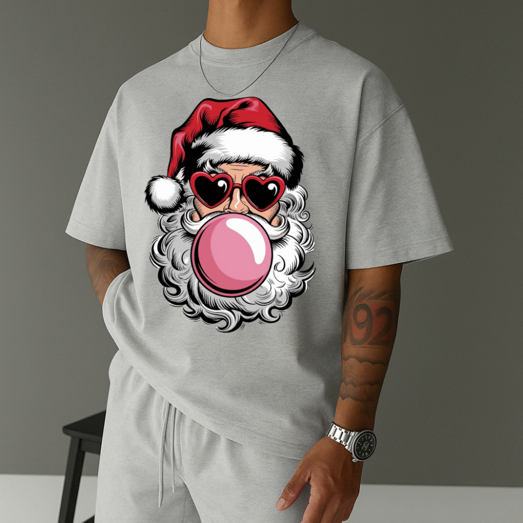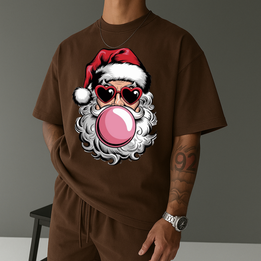 Camiseta Masculina Streetwear Papai Noel Bubbaloo Natal 2025 Tecido Algodão Estilo Academia Manga Curta Gola Redonda