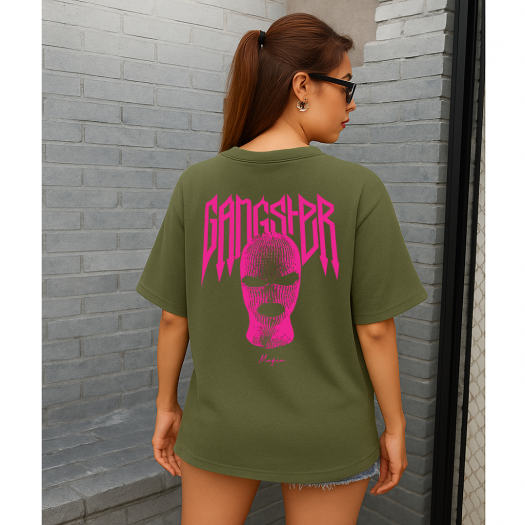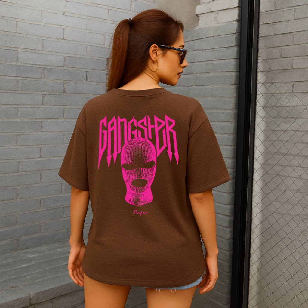 Camiseta Feminina Streetwear 100% Algodão Estampada Gangster Rosa Nas Costas Camisa Unissex Premium PROMOÇÃO