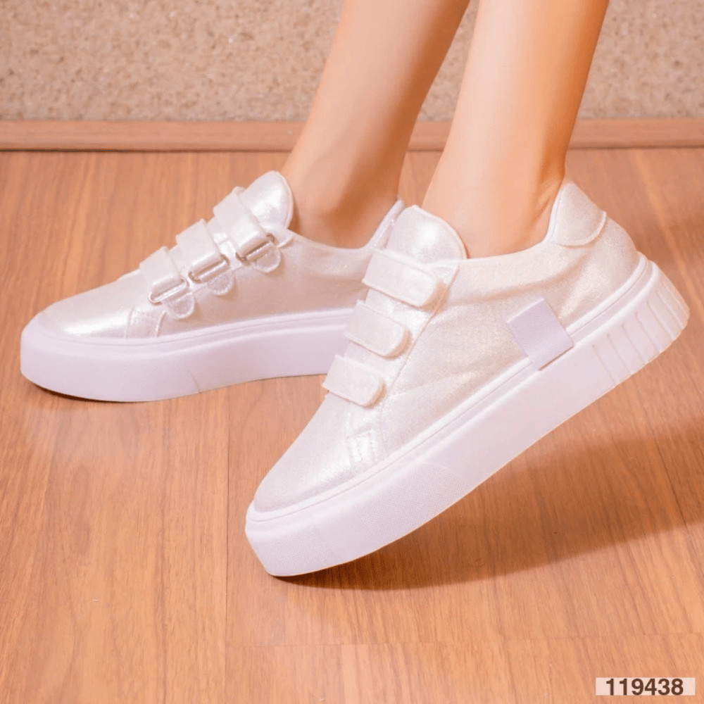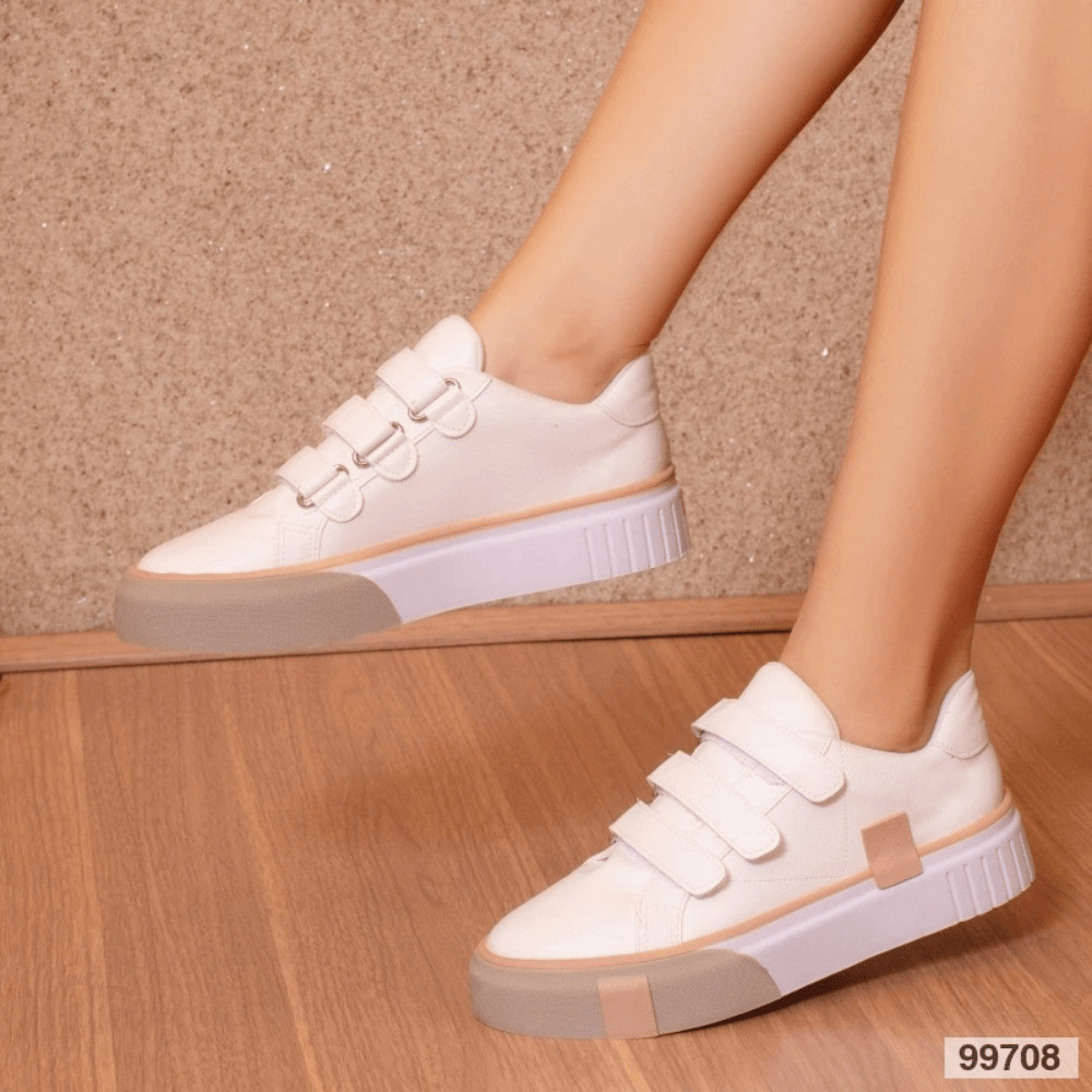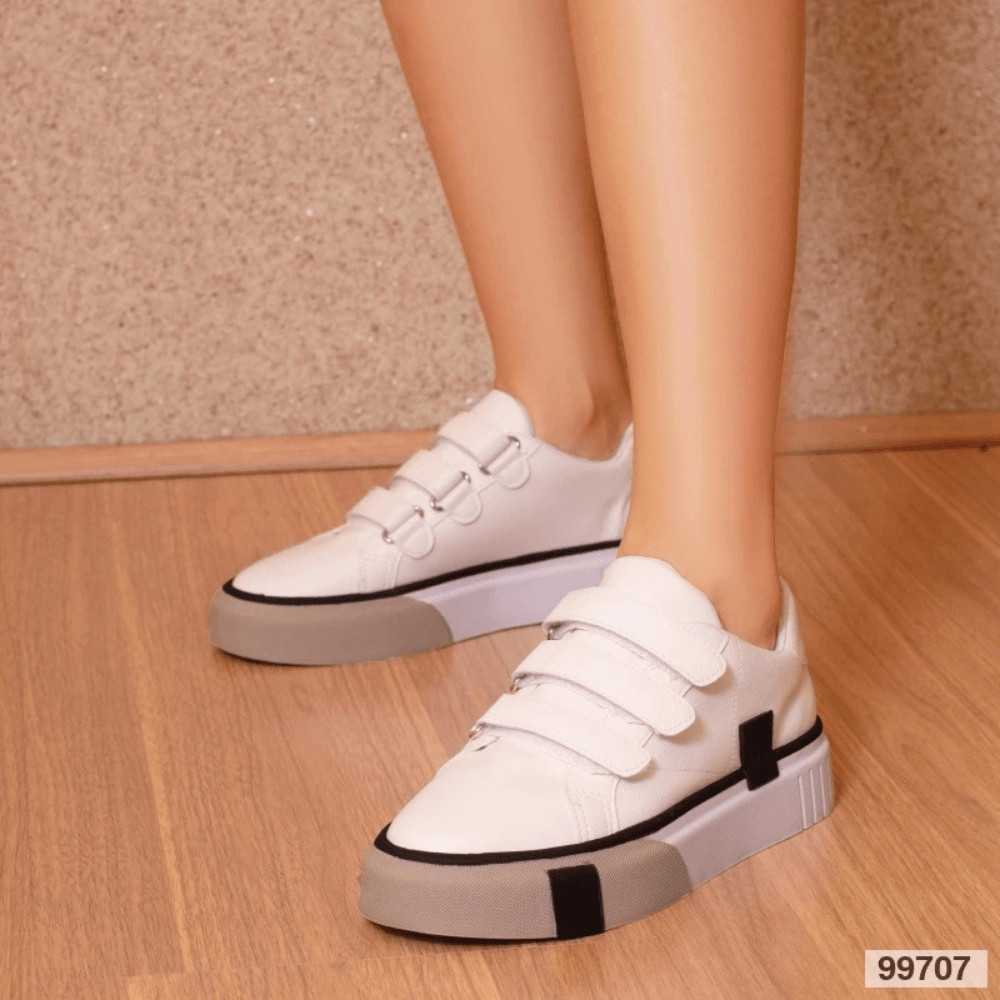 Tenis com velcro RETRO Multimateriais Branco Design Run Motion Sneakers Chuck Taylor