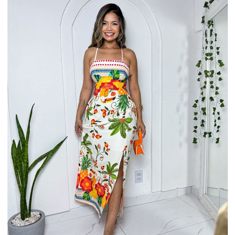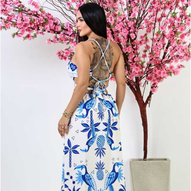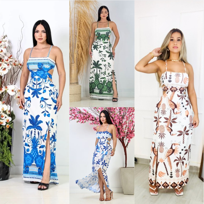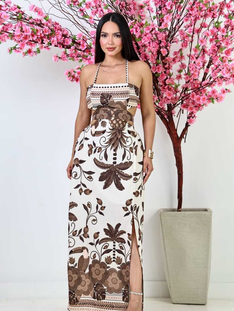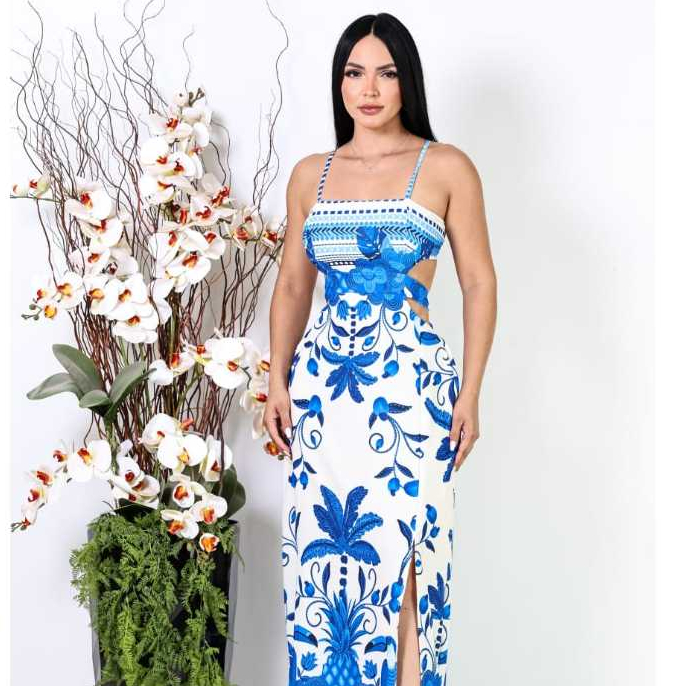 Vestido Feminino longo Tecido Duna estampado com Bojo TAMAHNO UNICO veste de 36 ao 42 .