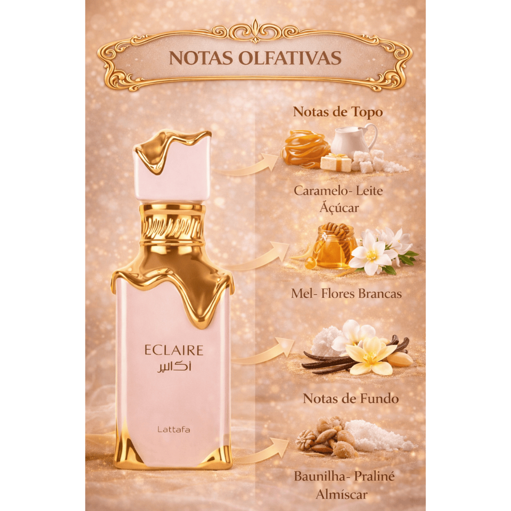 Perfume Árabe Eclaire Feminino | Original | Gourmand Doce Cremoso | Alta Fixação | Importado