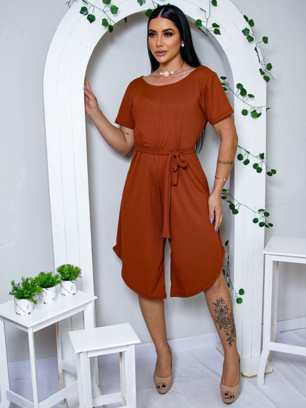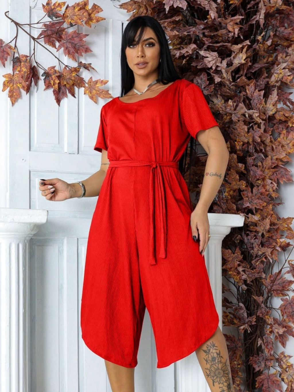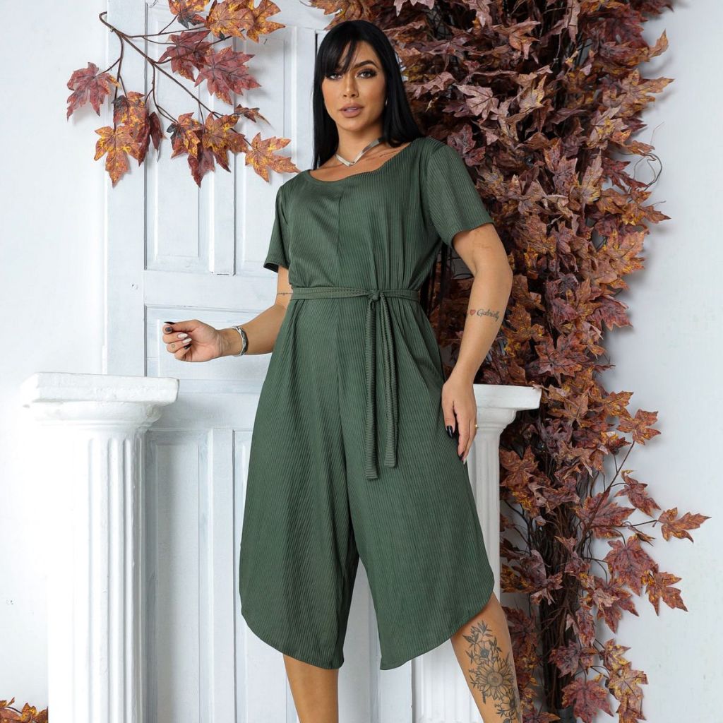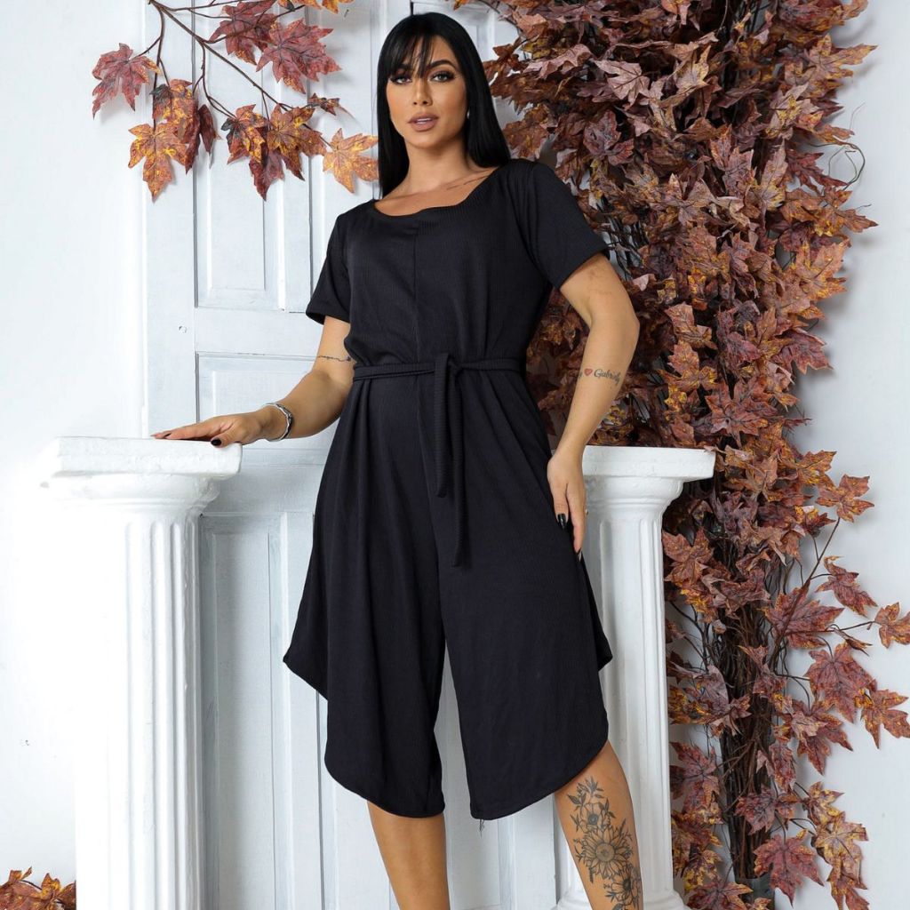 Macacão Feminino Pantacourt Midi Básico com Cinto de Amarração Moda Verão