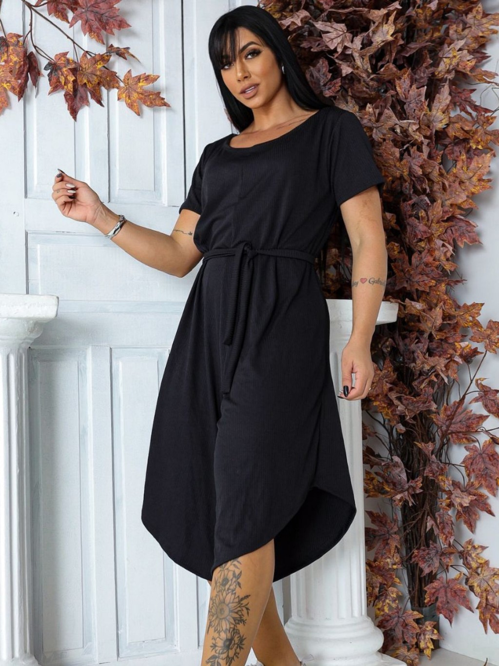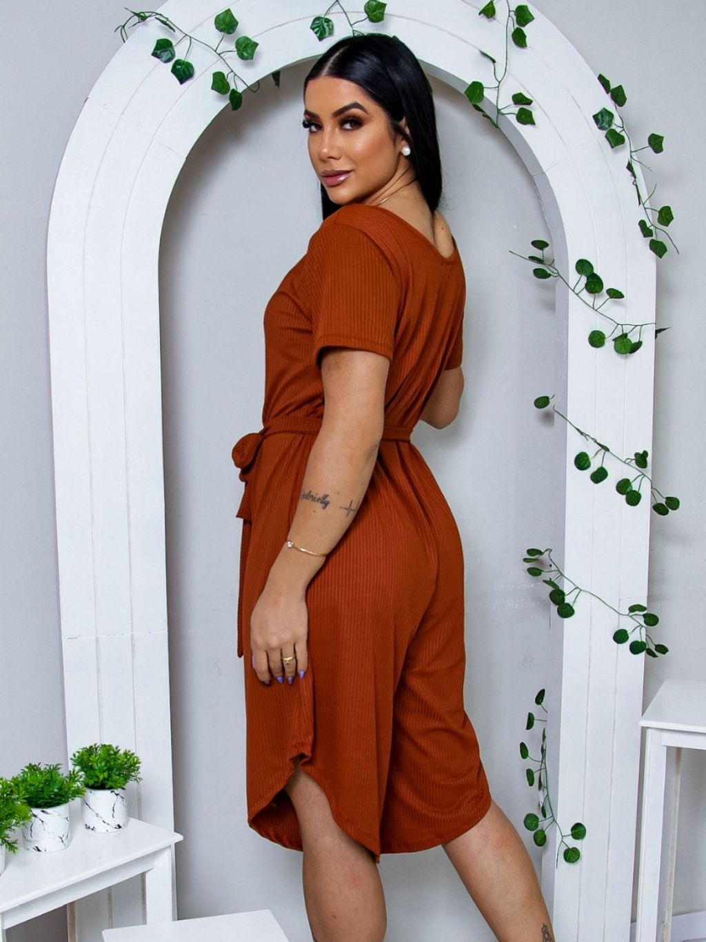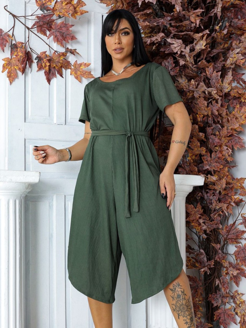 Macacão Feminino Pantacourt Midi Básico com Cinto de Amarração Moda Verão