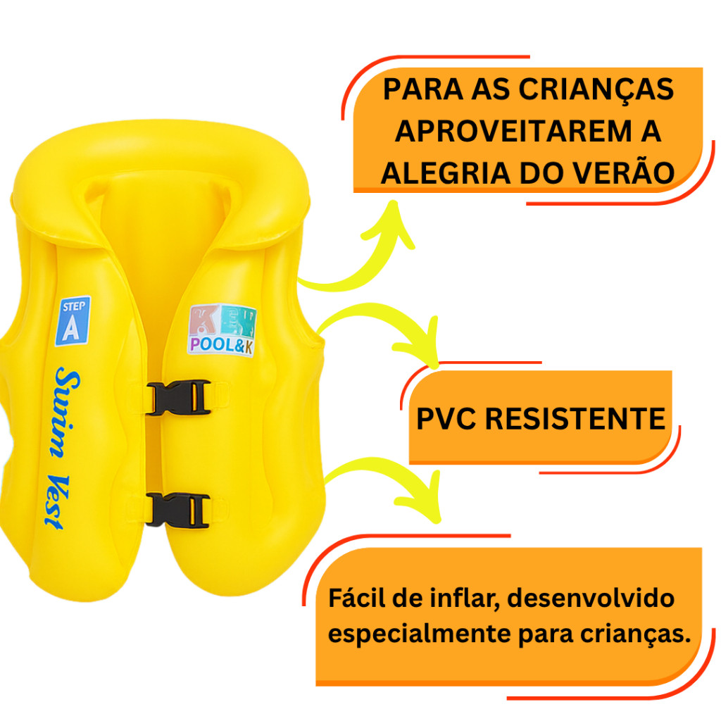 Boia Infantil Colete 3 Tamanhos Inflável Brinquedo Piscina Praia Lago