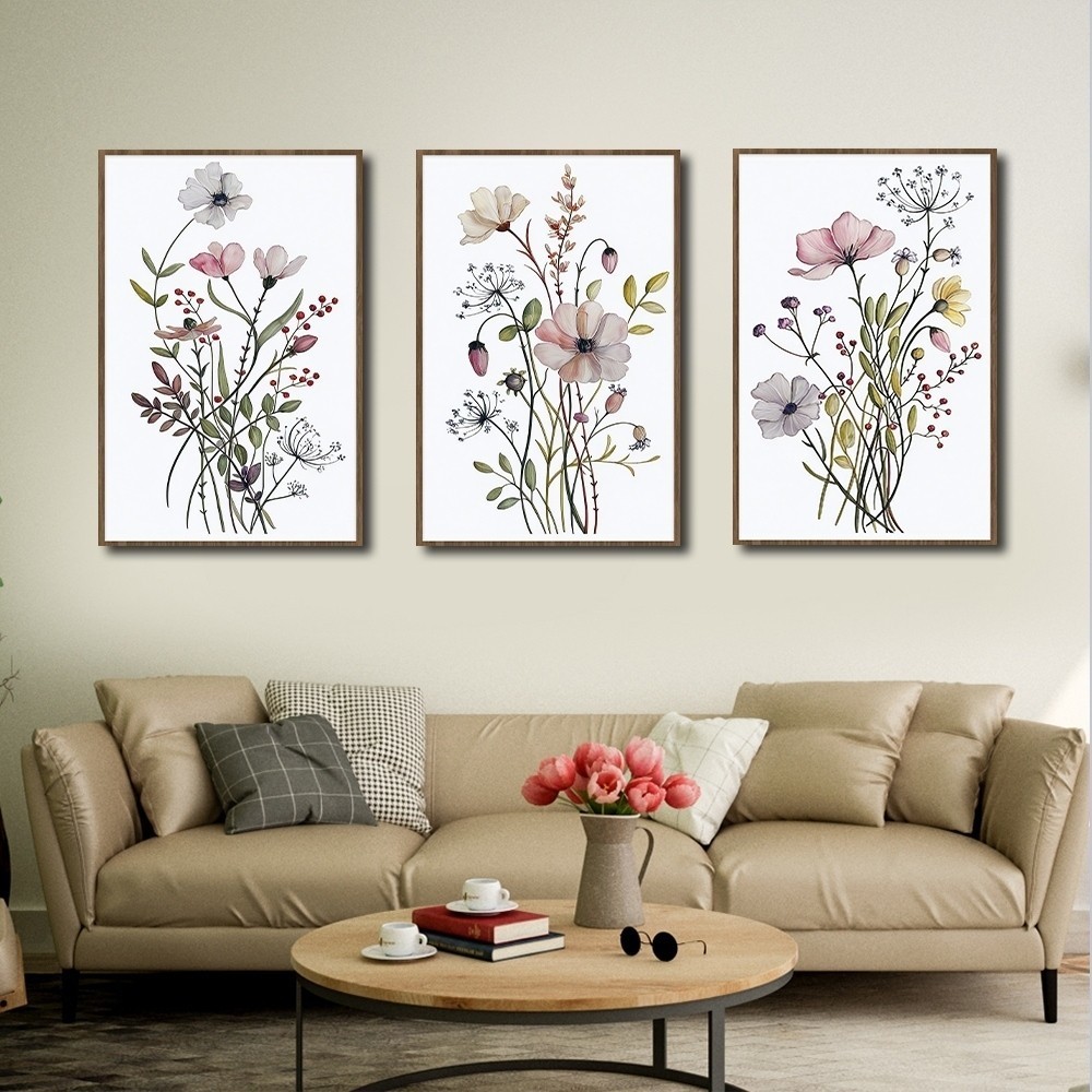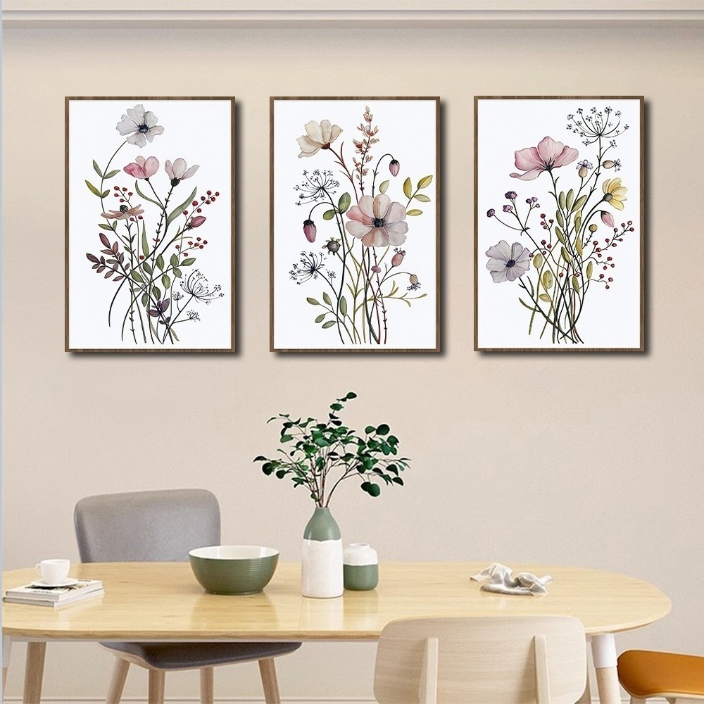 3Pcs 40x60/20x30cm Quadro decorativo estampas florais coloridas planta aquarela decoração para casa sala quaro WT2019