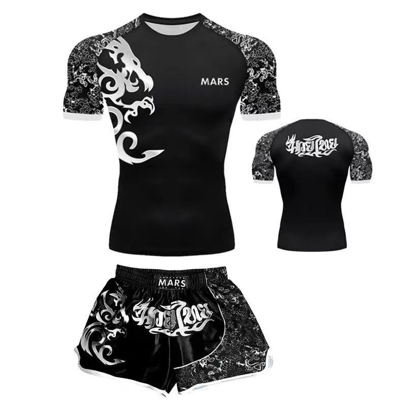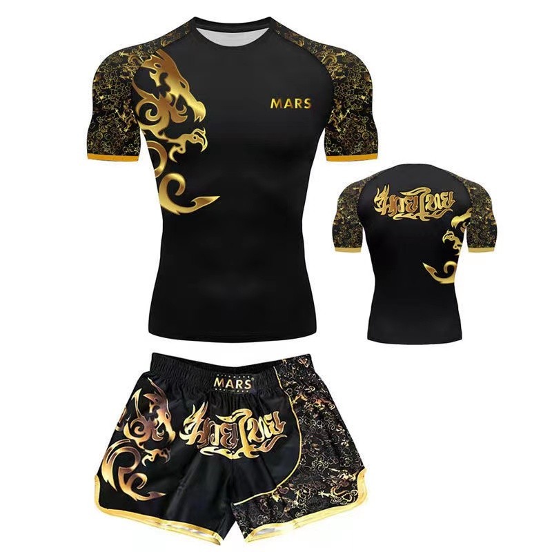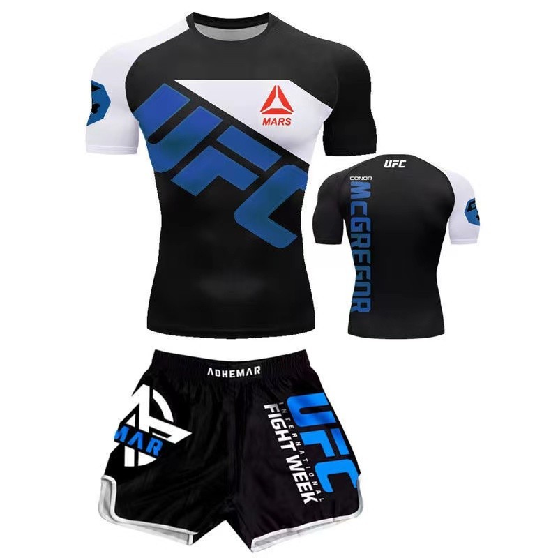 Moletom Muay Thai, manga curta, apertado, padrão de artes marciais, adequado para homens UFC Running Fitness Training Su