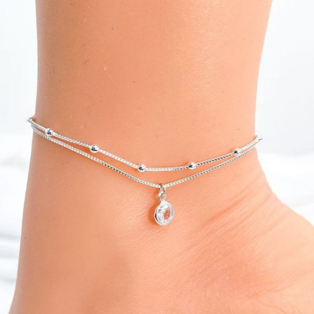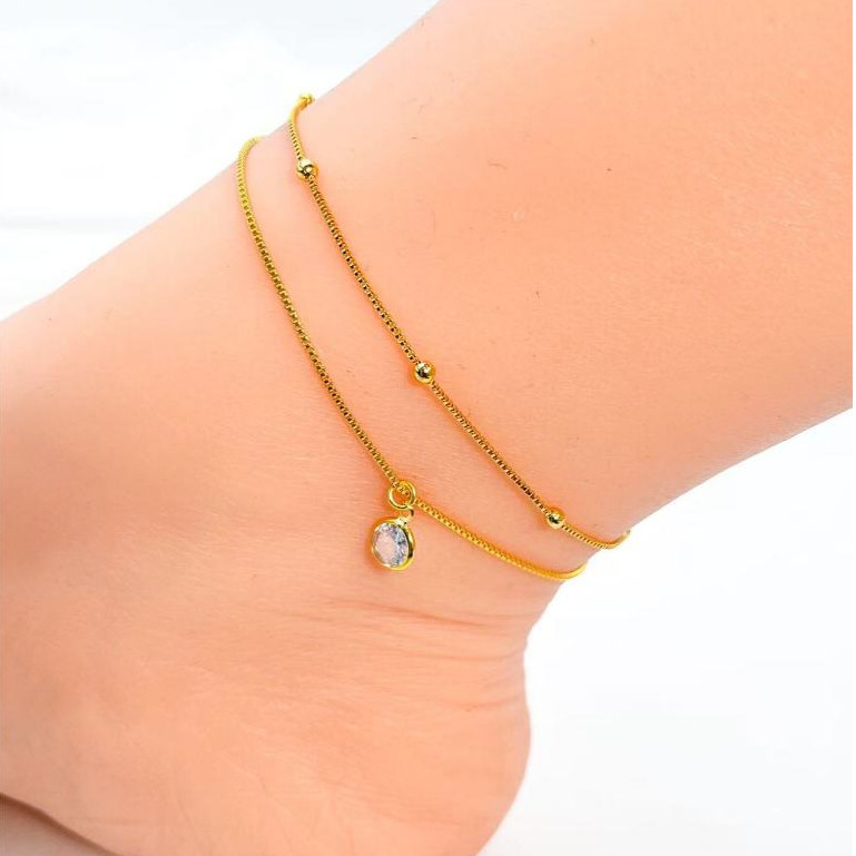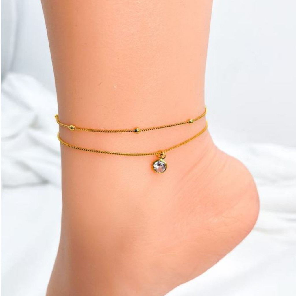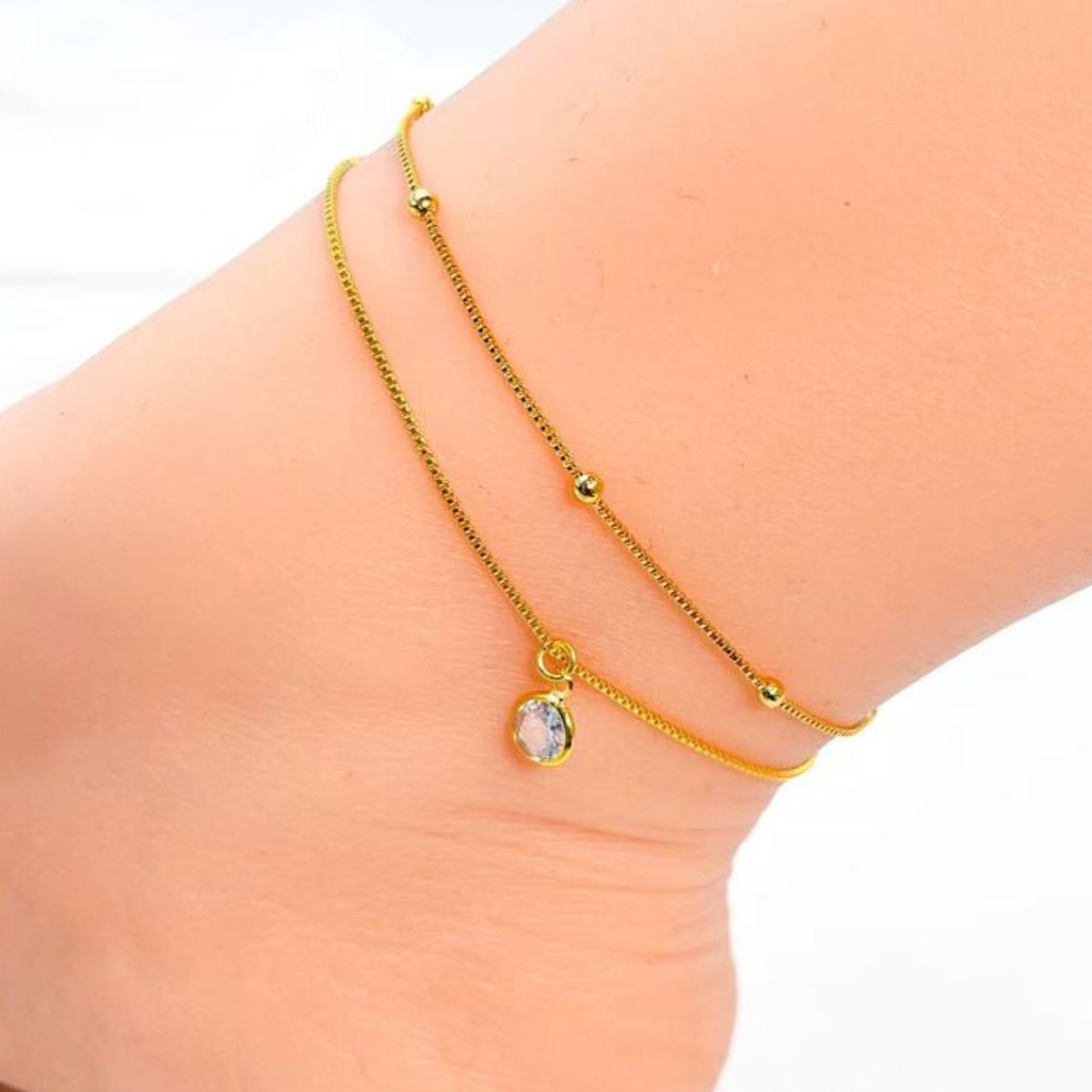 2 TORNOZELEIRA BOLINHA + PONTO DE LUZ BANHADA EM PRATA 925, OURO 18K