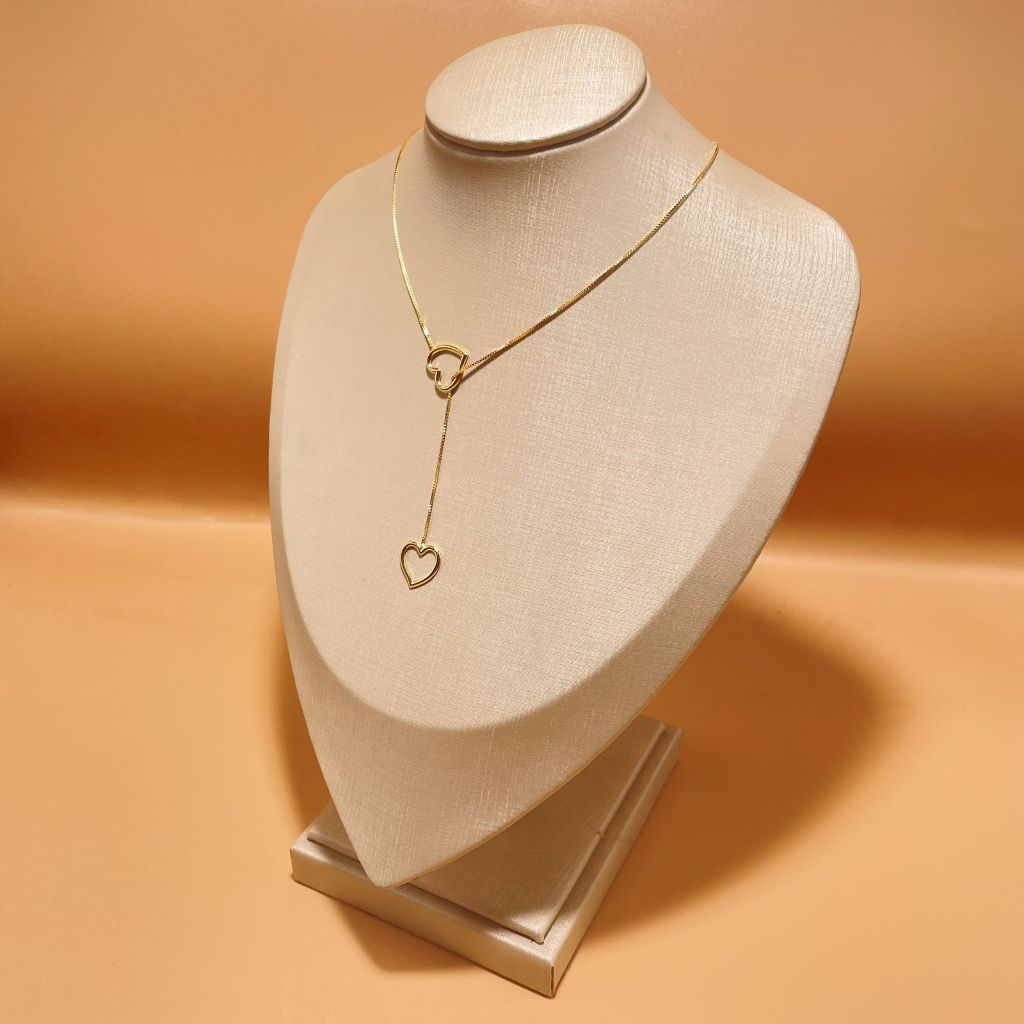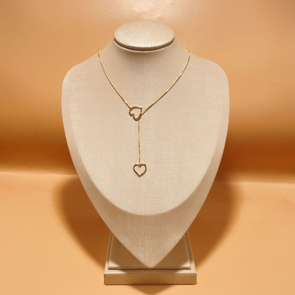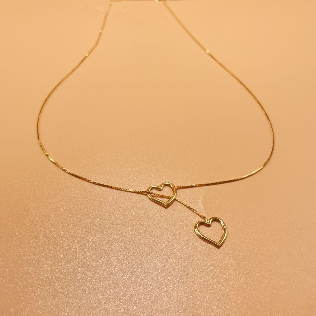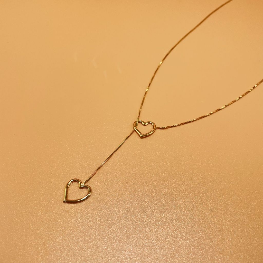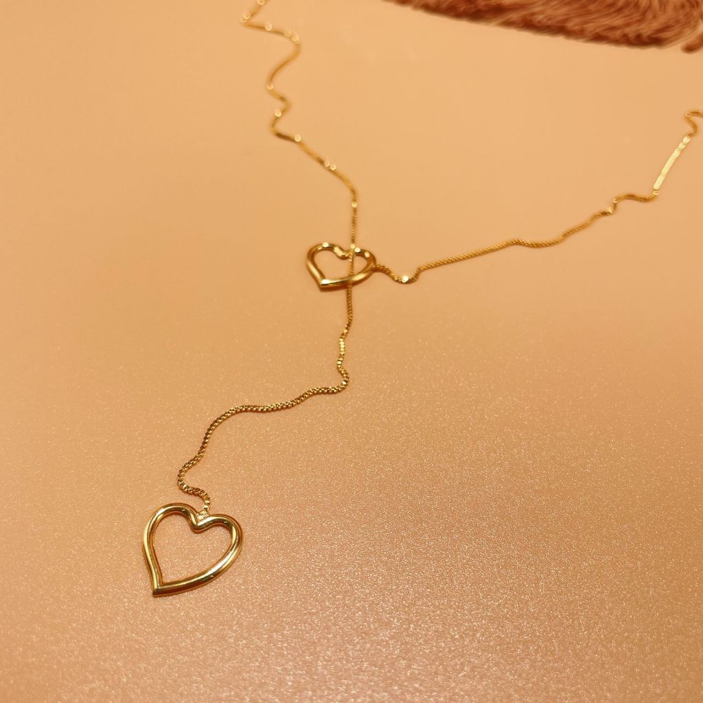 Colar Gravatinha Coração Pendurado Folheado a Ouro 18k