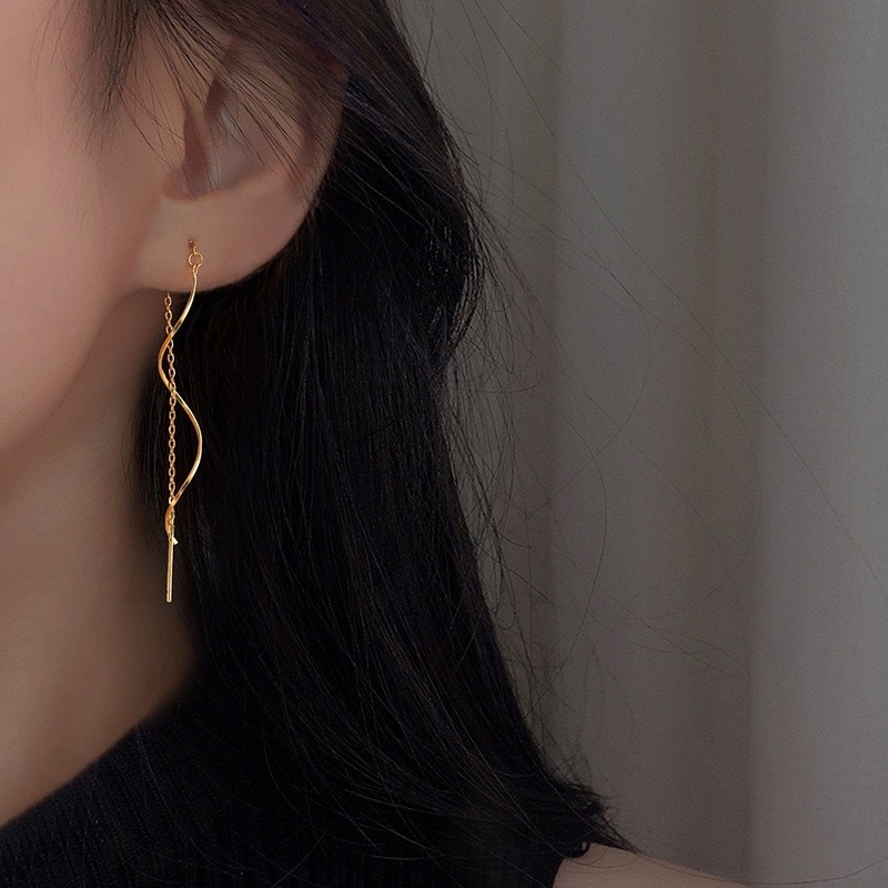 Brinco espiral dourado corrente Banhado A Ouro 18k A prata 925