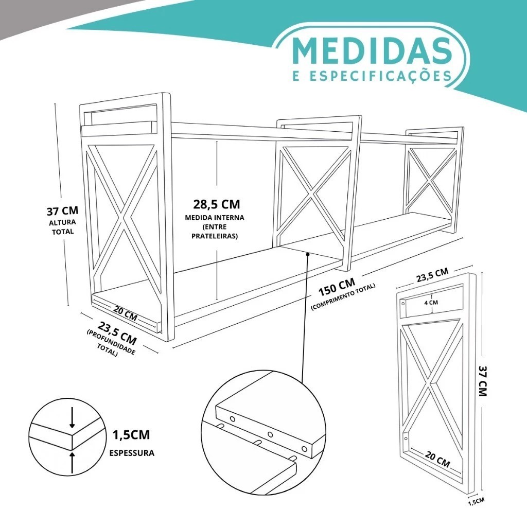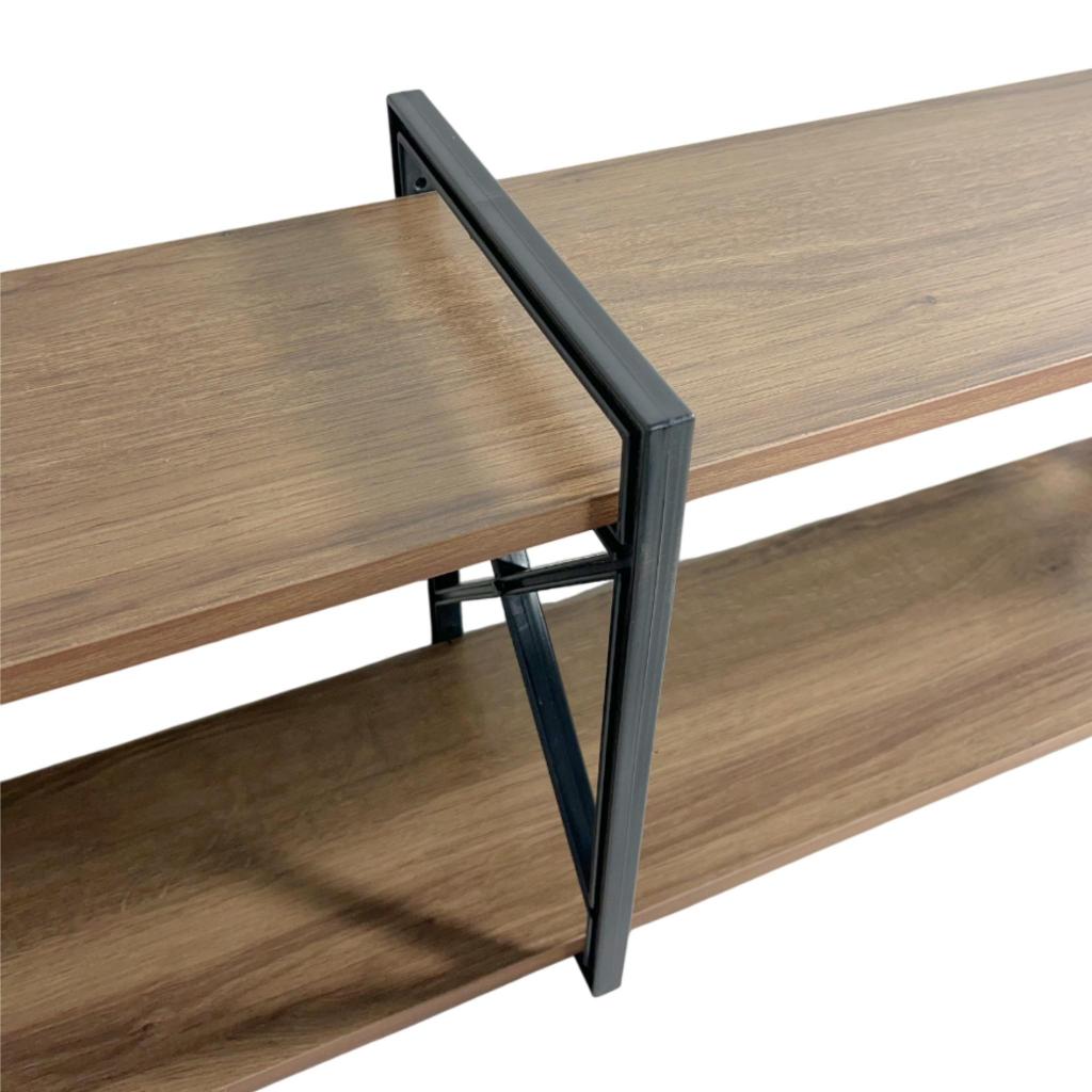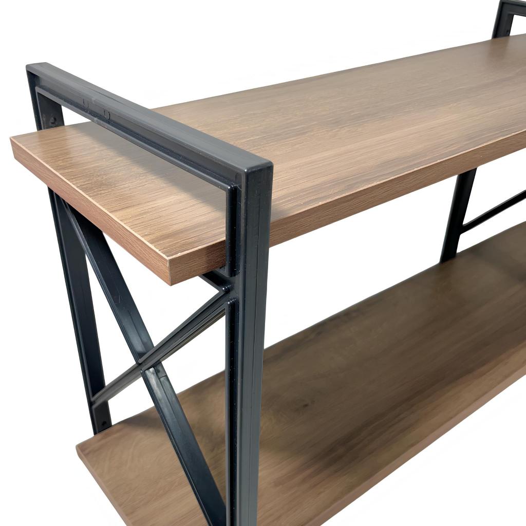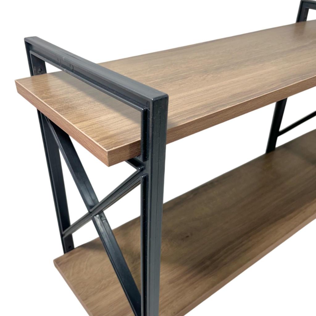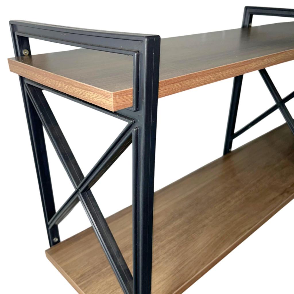 Prateleira X Industrial 2 Níveis 120cm Madeira Amêndoa Suporte Preto
