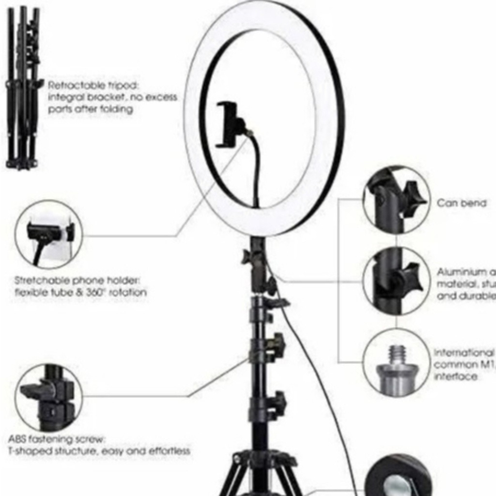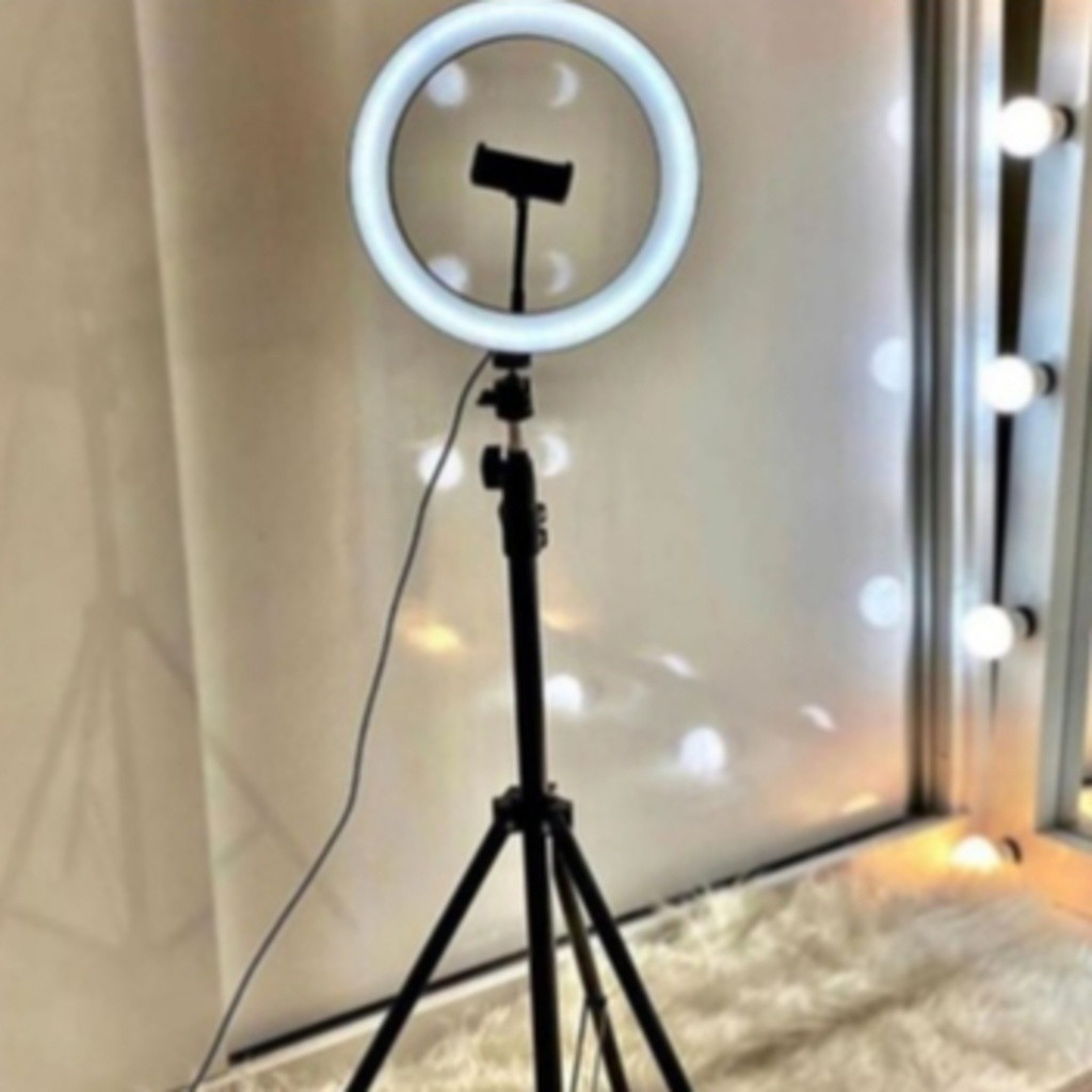 Suporte para selfie com luz anelar de 30 cm, luz de preenchimento LED regulável, tripé de 2,1 m, lâmpada com suporte par