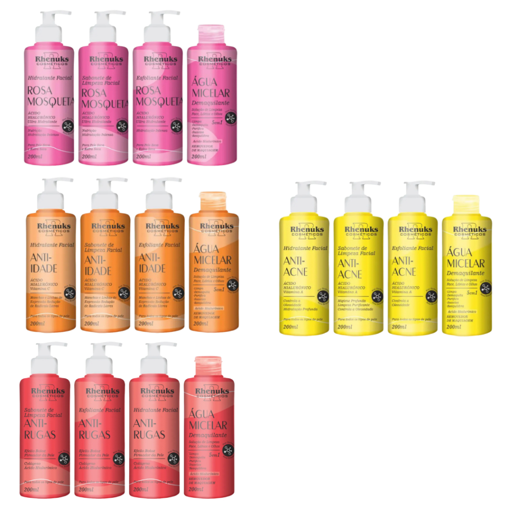 Kits para Skin Care (cuidado do rosto) com 4 itens - Rhenuks Cosméticos