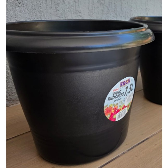 Vaso para plantas Redondo de Plástic Preto – 7,5 Litros