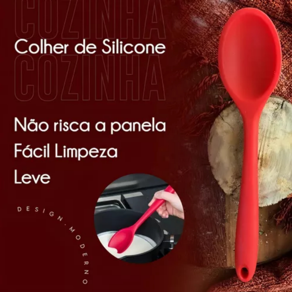 Kit Colher De Silicone Redonda de Silicone 27cm Grande Peças Vermelhas Para cozinha
