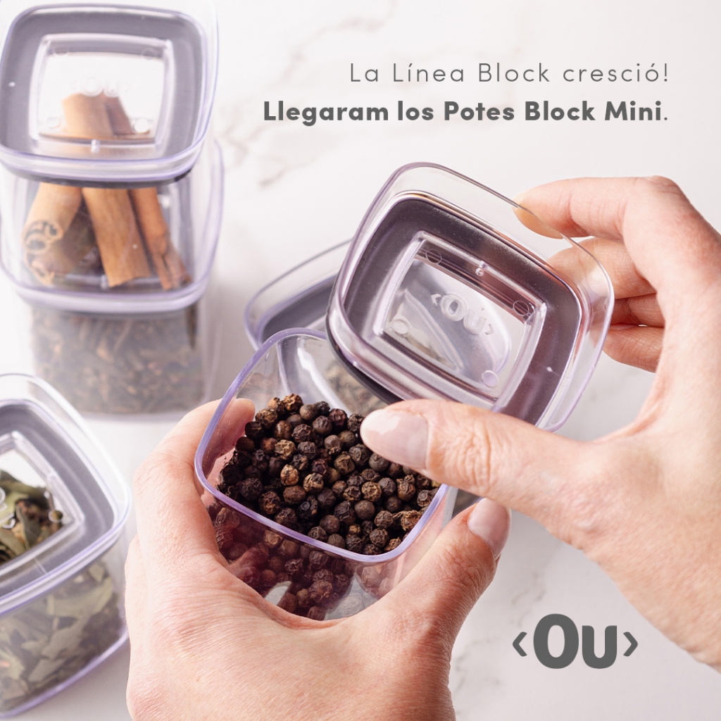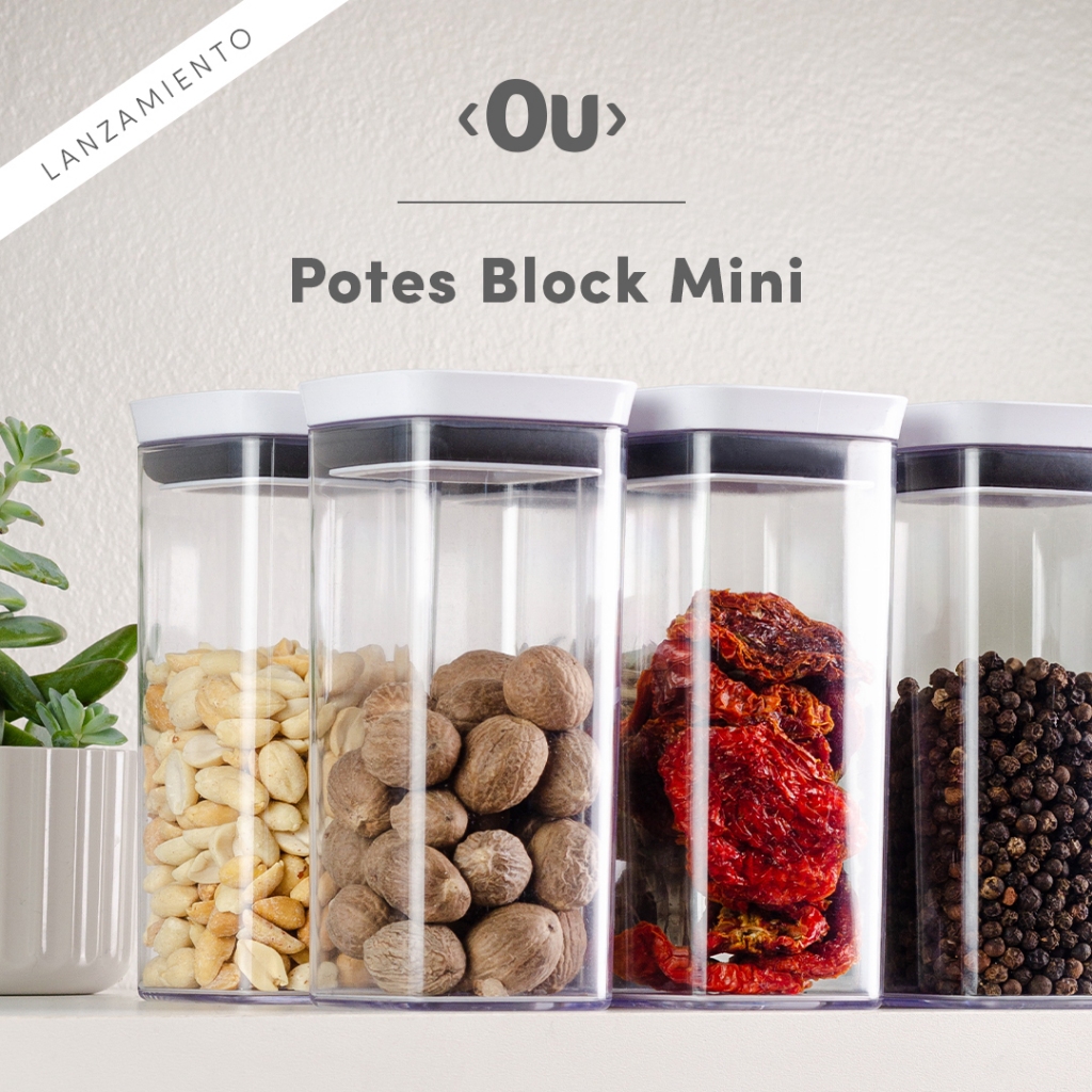 Kit de potes herméticos retangular Ou 5 peças 2,3L Linha Block - Natural