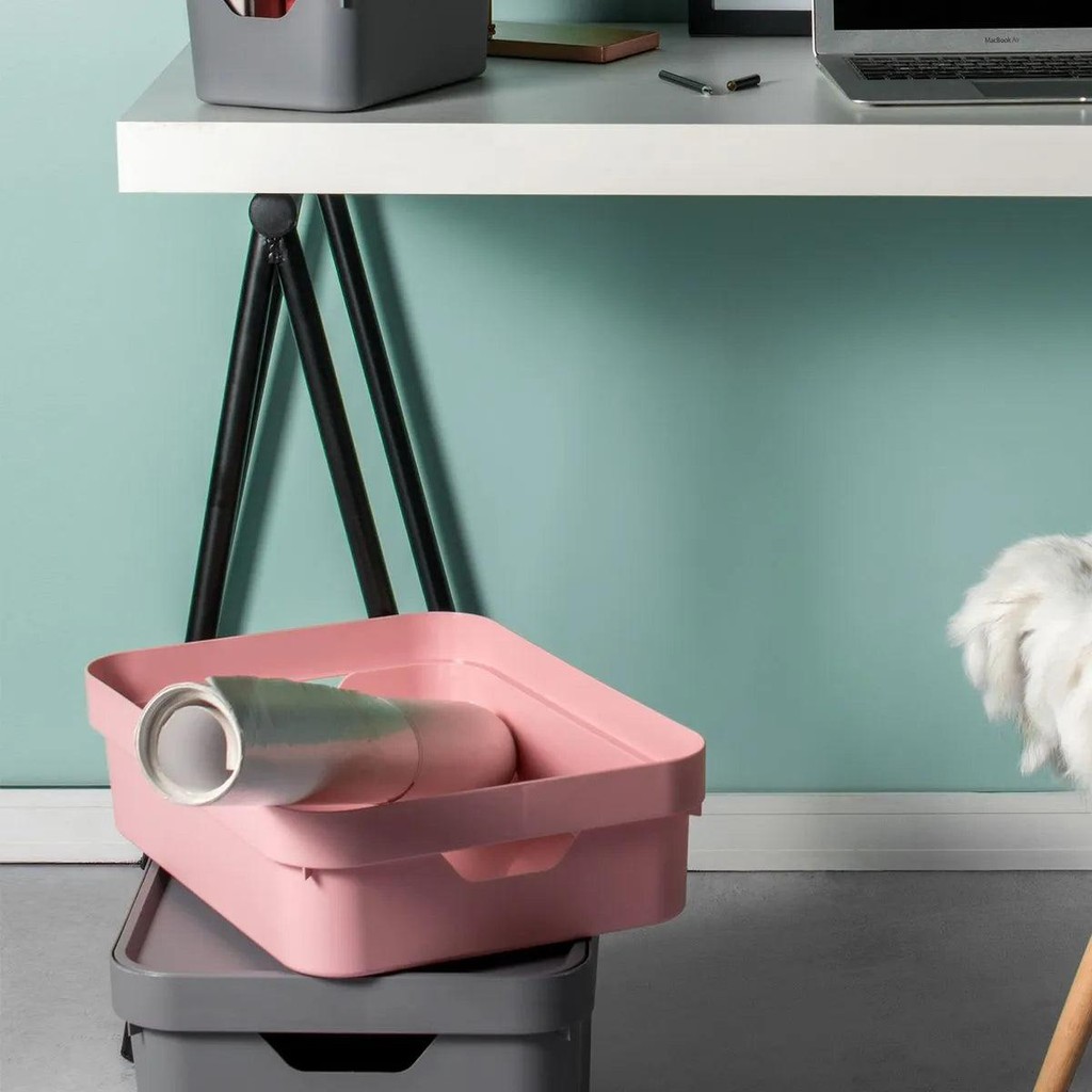 Kit de caixa organizadora com tampa Ou 4 peças 10,5L Linha Cube - Chumbo