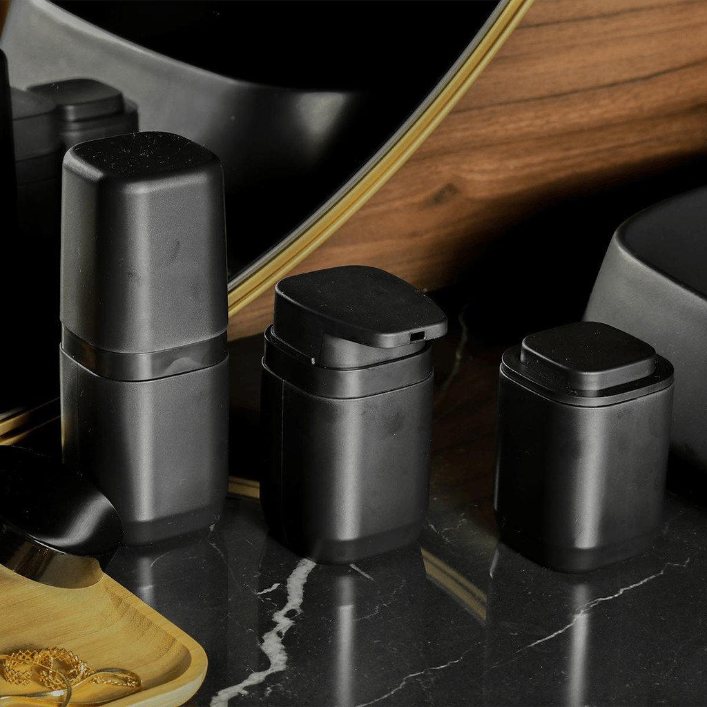 Kit de banheiro Completo com lixeira de pedal Ou 5 peças Linha Aura - Preto