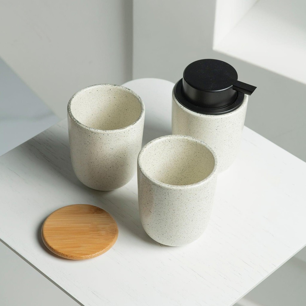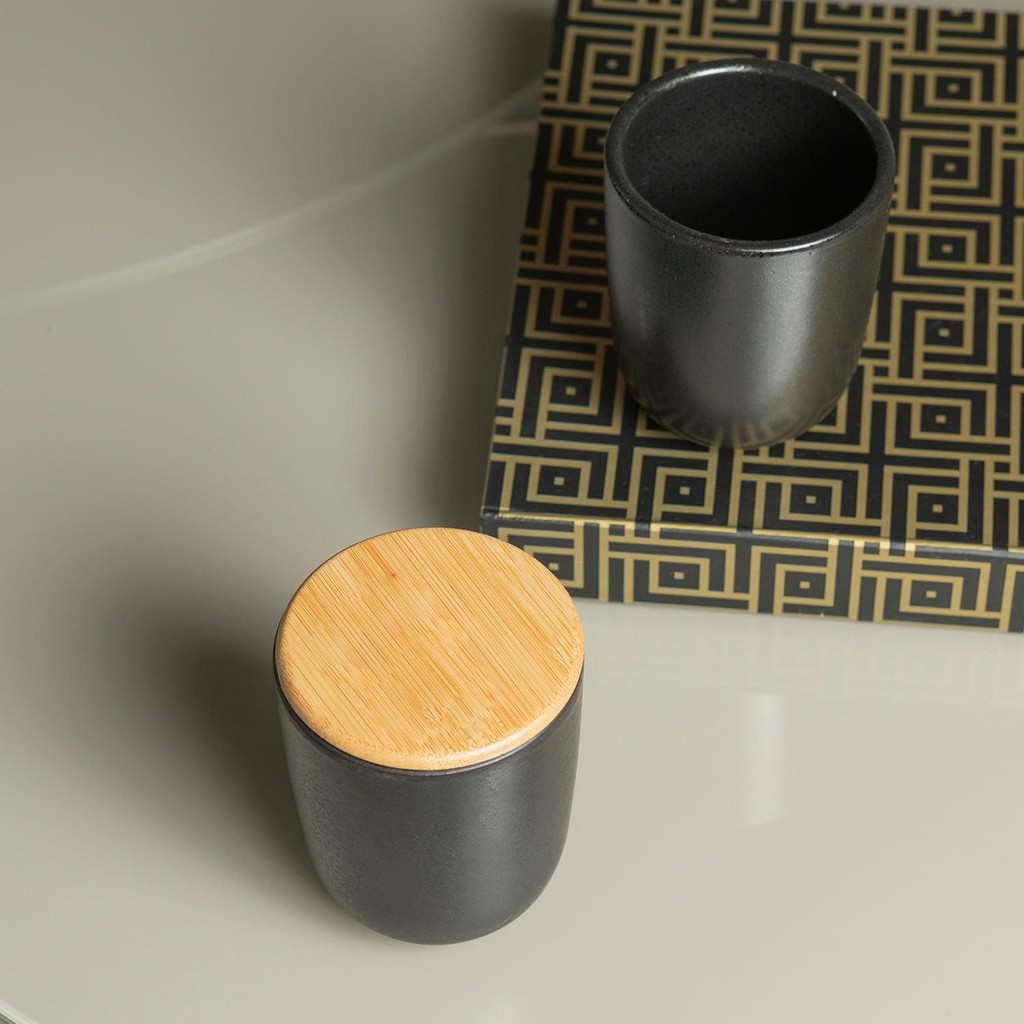 Porta algodão e cotonete em cerâmica com tampa de bambu Ou Linha Osaka