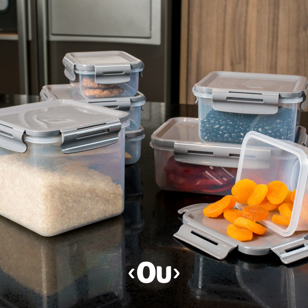 Kit de potes herméticos quadrado Ou 4 peças 800 ML Click Branco