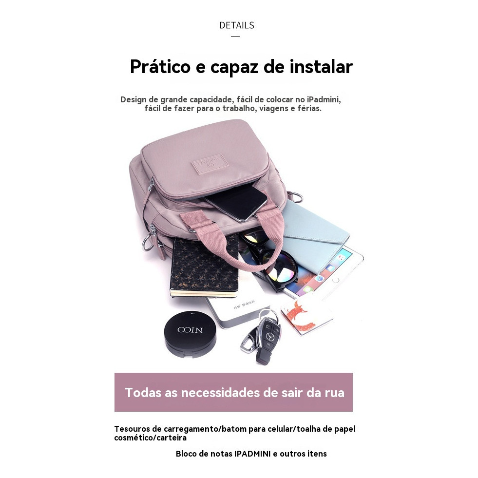 Bolsa Feminina Nylon Impermeável Vira Mochila Transvers 9550 bosco