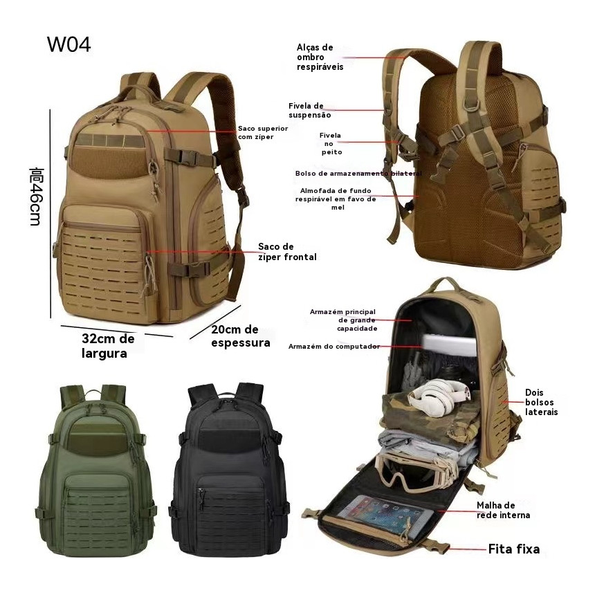 Mochila Militar Tatica Do Exército Bolsa Tatica Masculina W04 Bosco.Loja