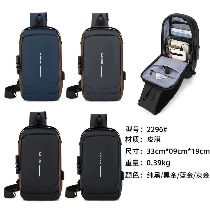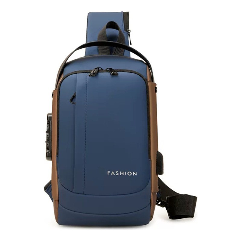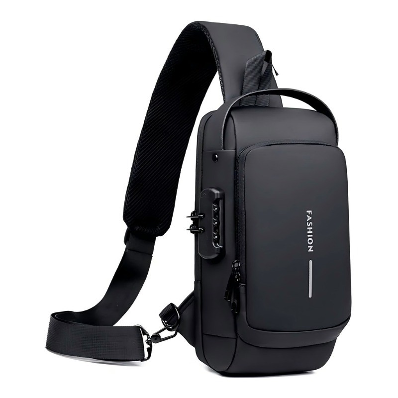 Mochila de Ombro Transversal Compacta Unilateral USB Trava de Código Á prova d'água