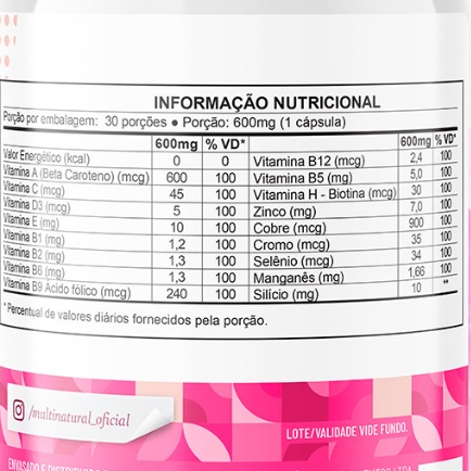 Colágeno + Biotina Multi Hair Pote 30 Capsulas Pele Cabelo e Unhas - Multi Natural