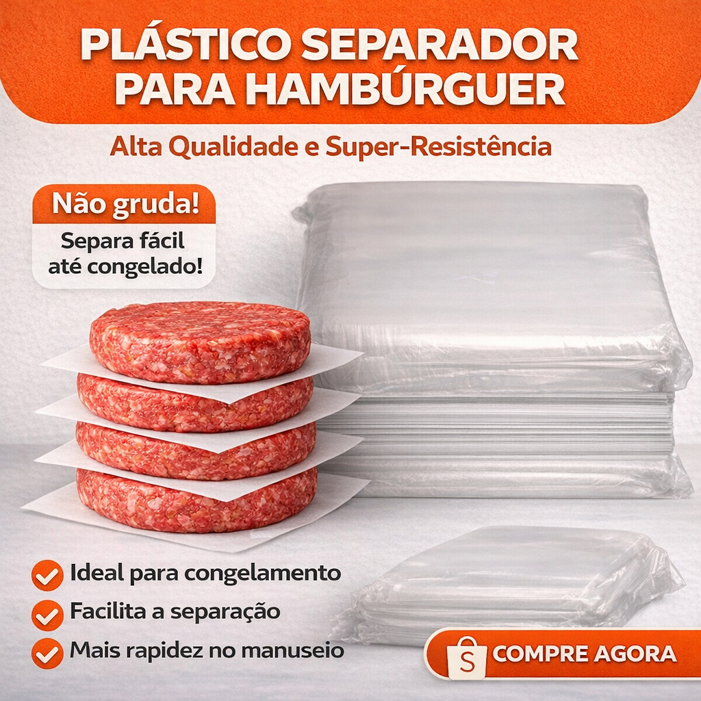 Separador de Hamburguer 12x12 e 15x15 (Branco) de Plástico Alimentício Resistente Não Gruda
