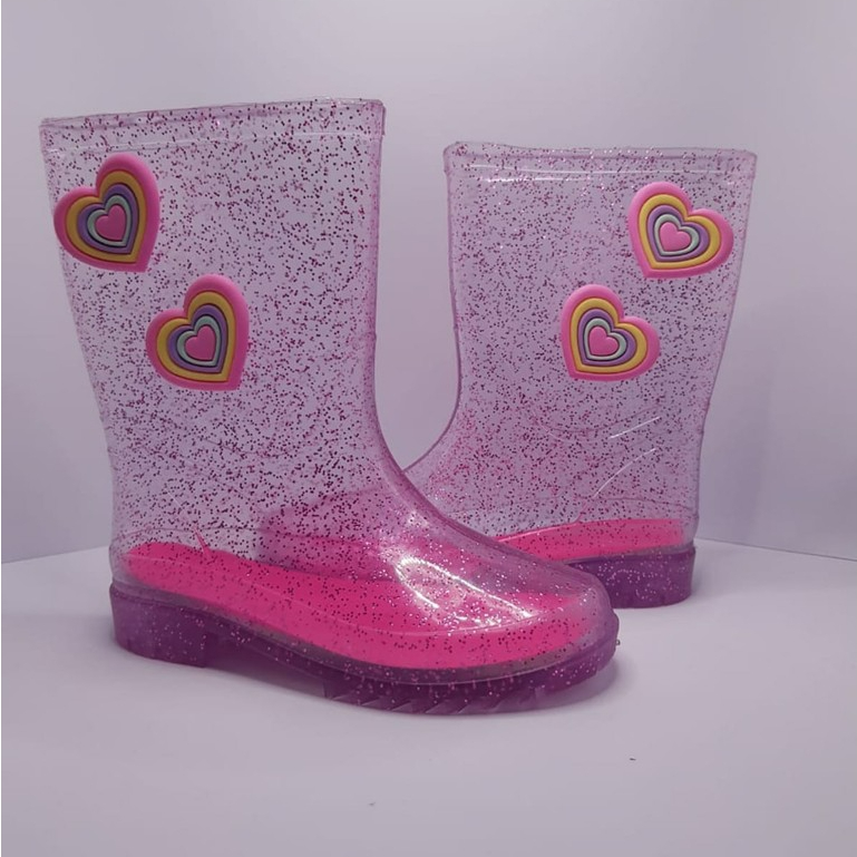 Galocha Infantil Menina Leve Impermeável Antiderrapante com Corações – Glitter Confortável Happy Kids