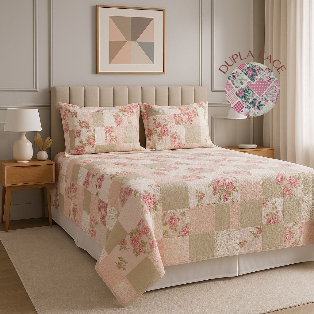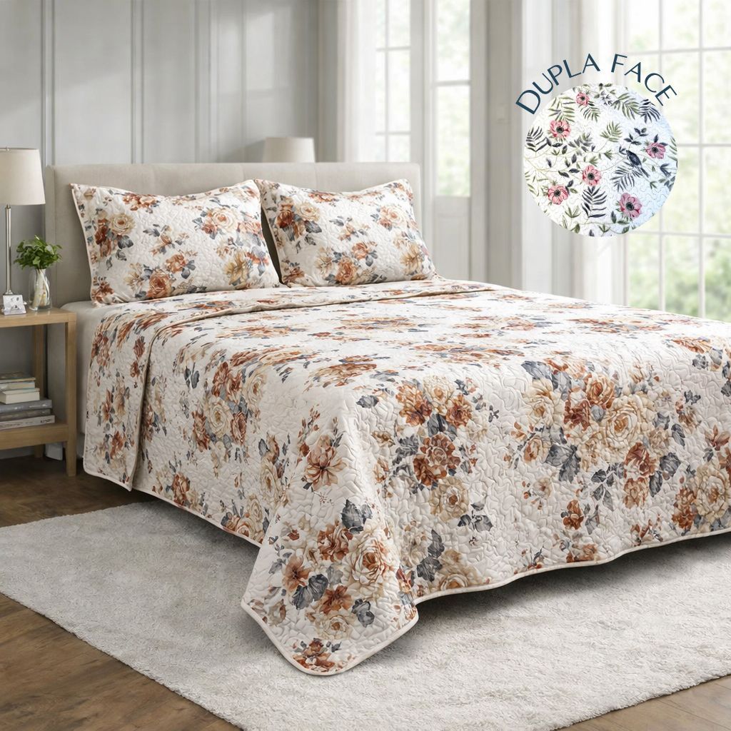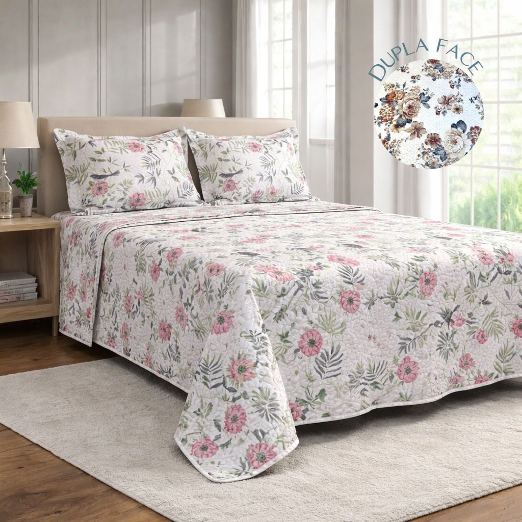 Kit Colcha Cobre Leito Bouti Dupla Face 3 peças, Casal Tradicional Box – 2,20m x 2,40m